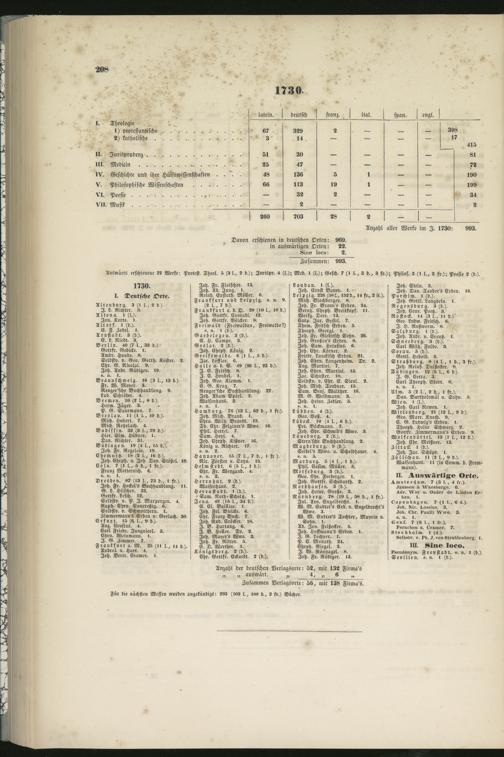 Auswärts erschienene 22 Werke: Protest. Theol. 5 (3 l-, 2 d.); Jurispr. 4 (l.); Med. I (l.); Gesch. 7 (t l-, 3 d., 3 fr.); Philos. 3 (i l., 2 fr.); Poesie 2 (d.).