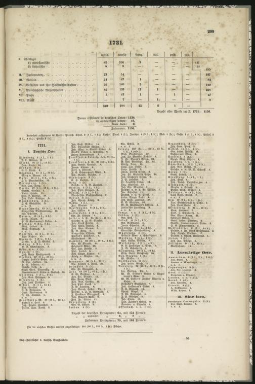 Anzahl der deutschen Verlagsorte: 64, mit 154 Firma's„ „ auswart. „ 6, „ 7 „