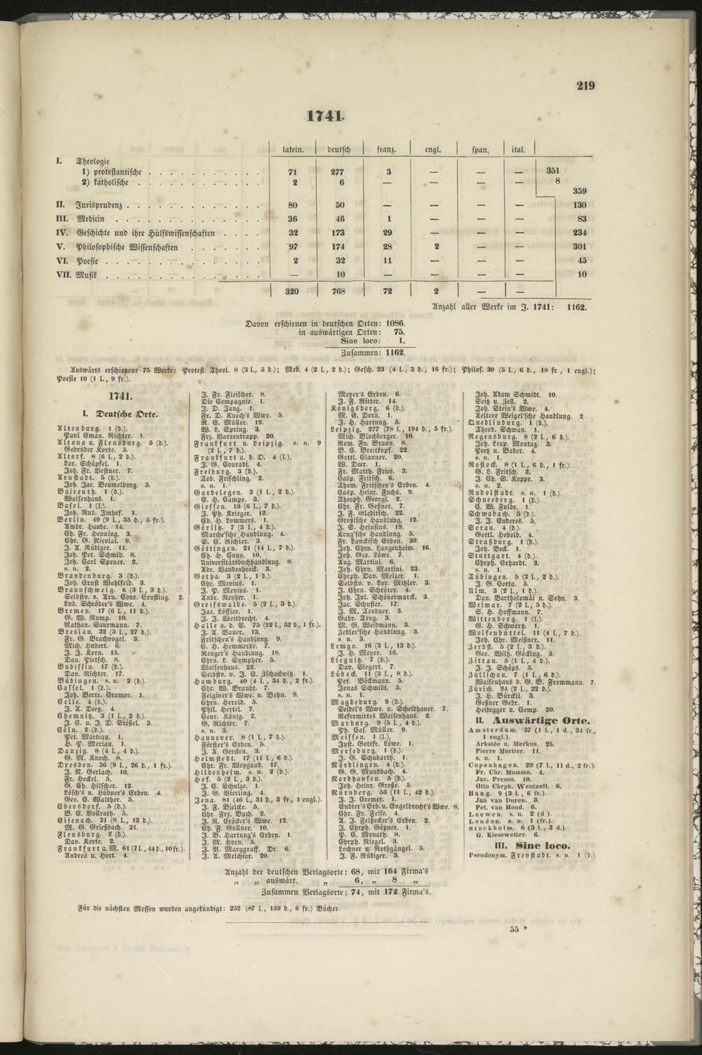 Anzahl aller Werke im I. 1741: 1162.