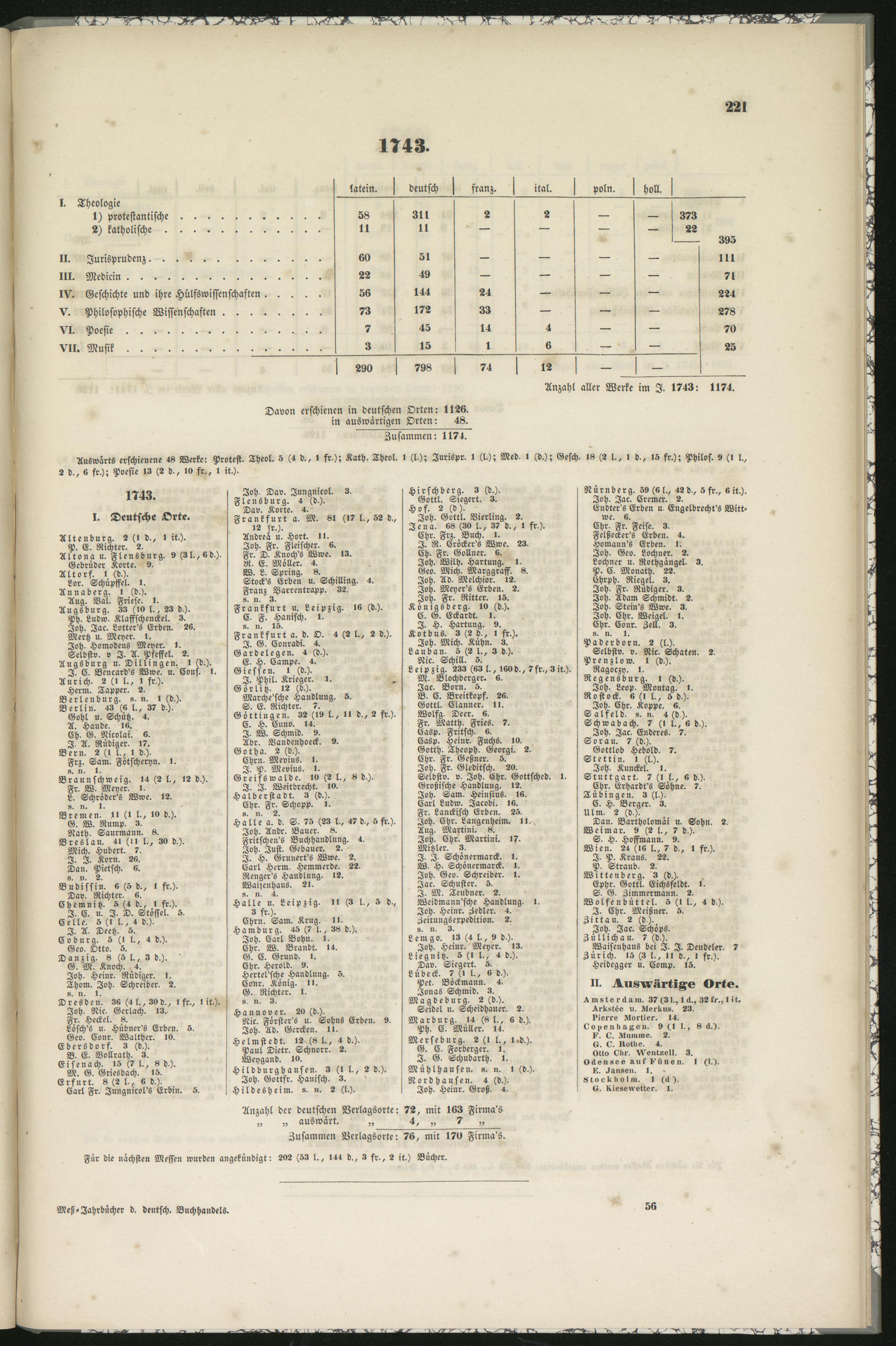 Anzahl aller Werke im I. 1743: 1174.