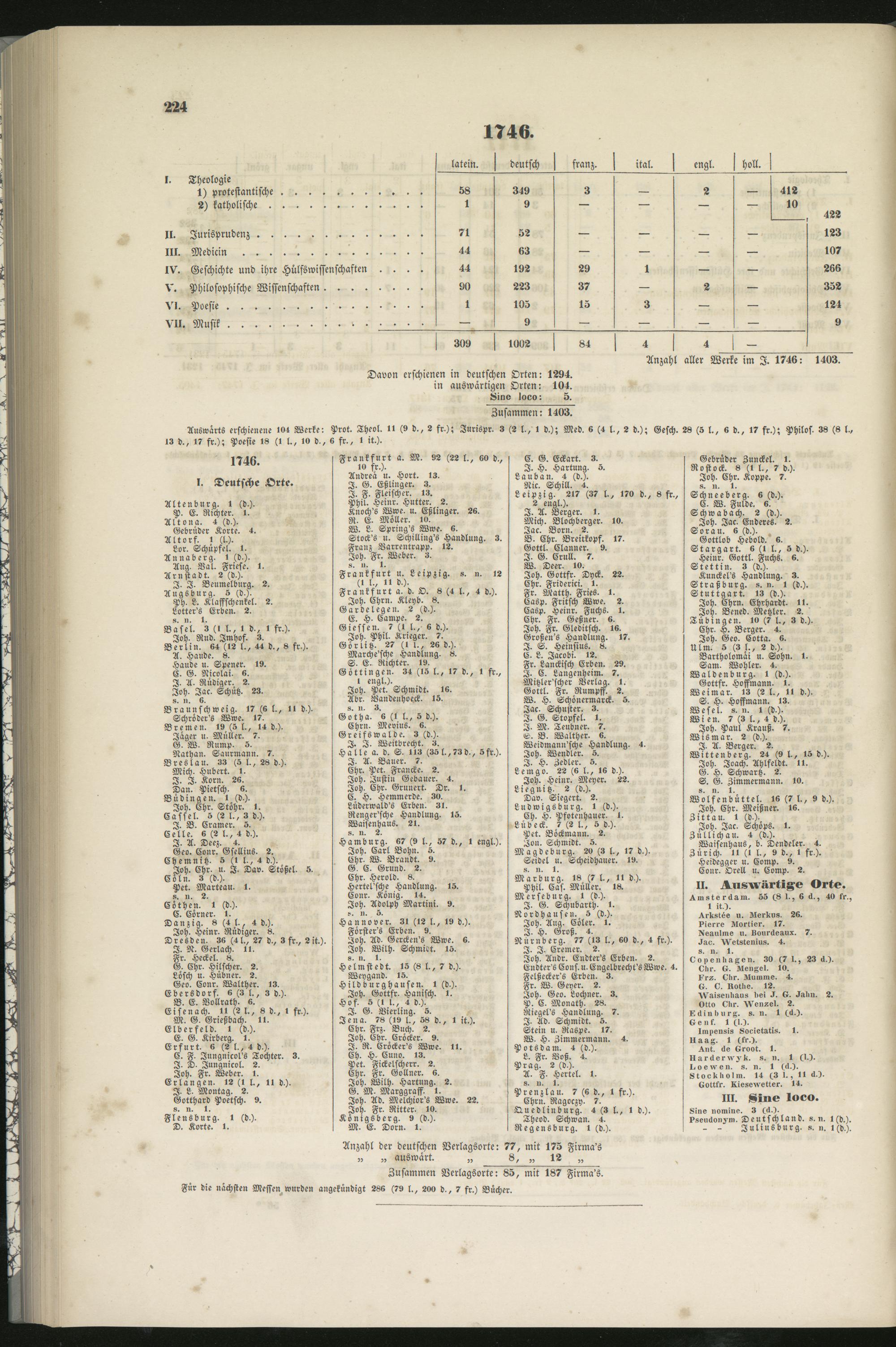 Anzahl aller Werke im I. 1746: 1403.