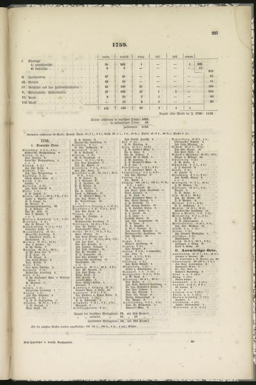 Anzahl der deutschen Verlagsorte: 73, mit 154 Firma's„ „ auswärt. „ 10, „ 10