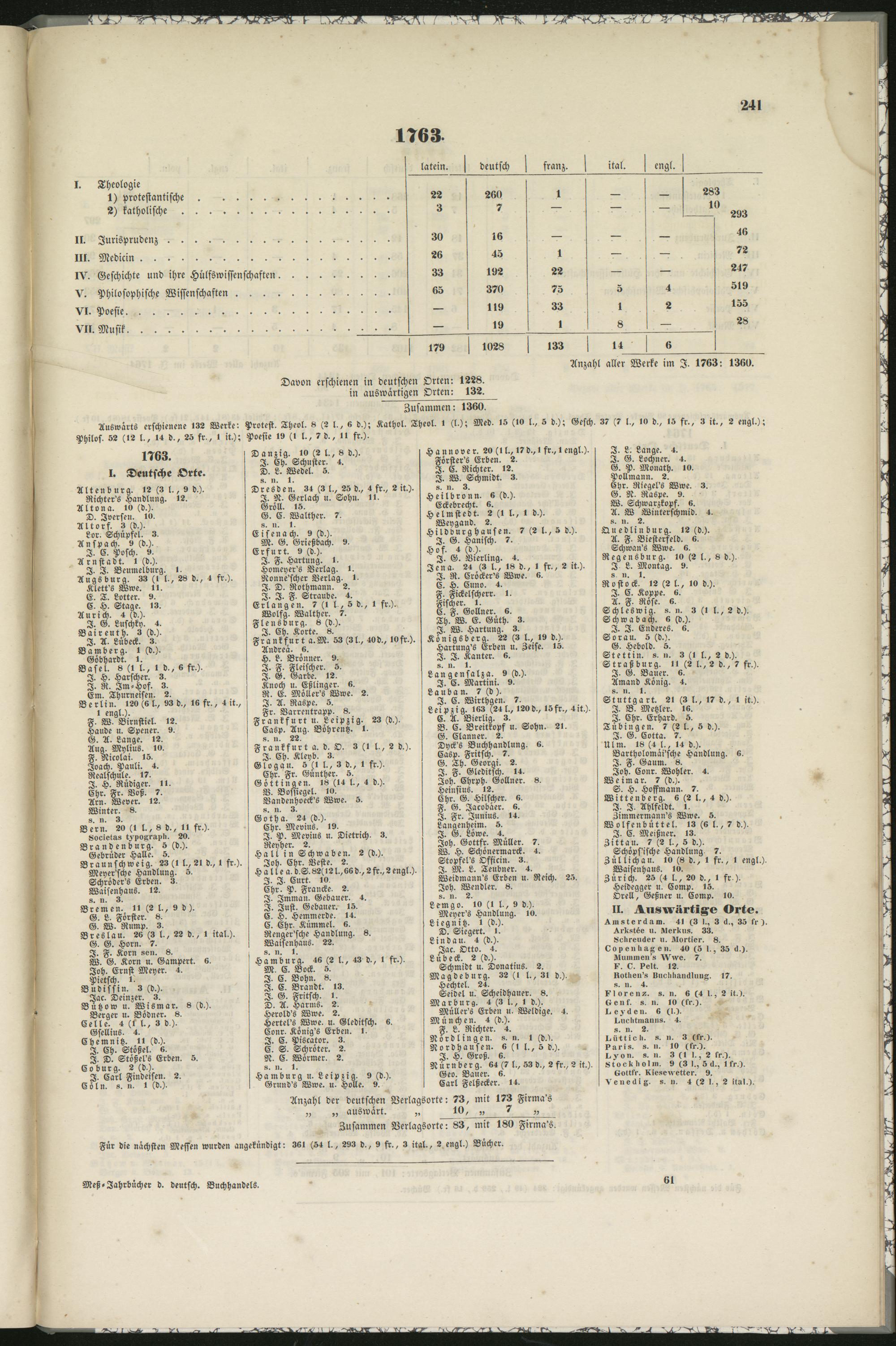 Anzahl der deutschen Verlagsorte: 73, mit 173 Firma's„ auswärt. „ 10, „ 7 „