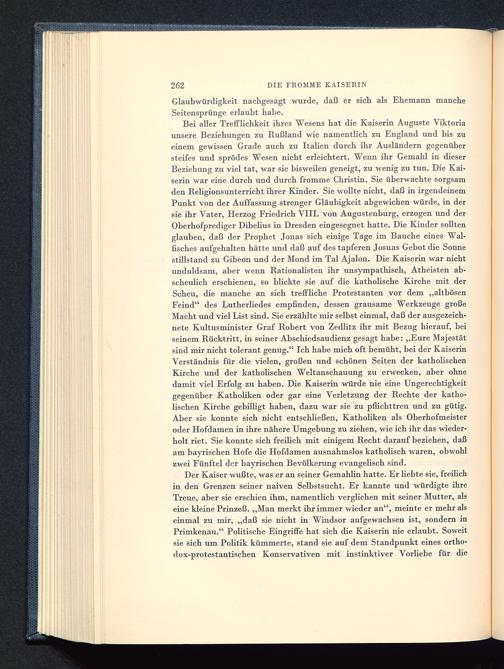 Der Kaiser wußte, was er an seiner Gemahlin hatte. Er hebte sie, freilichin den Grenzen seiner naiven Selbstsucht. Er kannte und würdigte ihreTreue, aber sie erschien ihm, namentlich verglichen mit seiner Mutter, alseine kleine Prinzeß. „Man merkt ihr immer wieder an", meinte er mehr alseinmal zu mir, „daß sie nicht in Windsor aufgewachsen ist, sondern inPrimkenau." Politische Eingriffe hat sich die Kaiserin nie erlaubt. Soweitsie sich um Politik kümmerte, stand sie auf dem Standpunkt eines ortho-dox-protestantischen Konservativen mit instinktiver Vorliebe für die