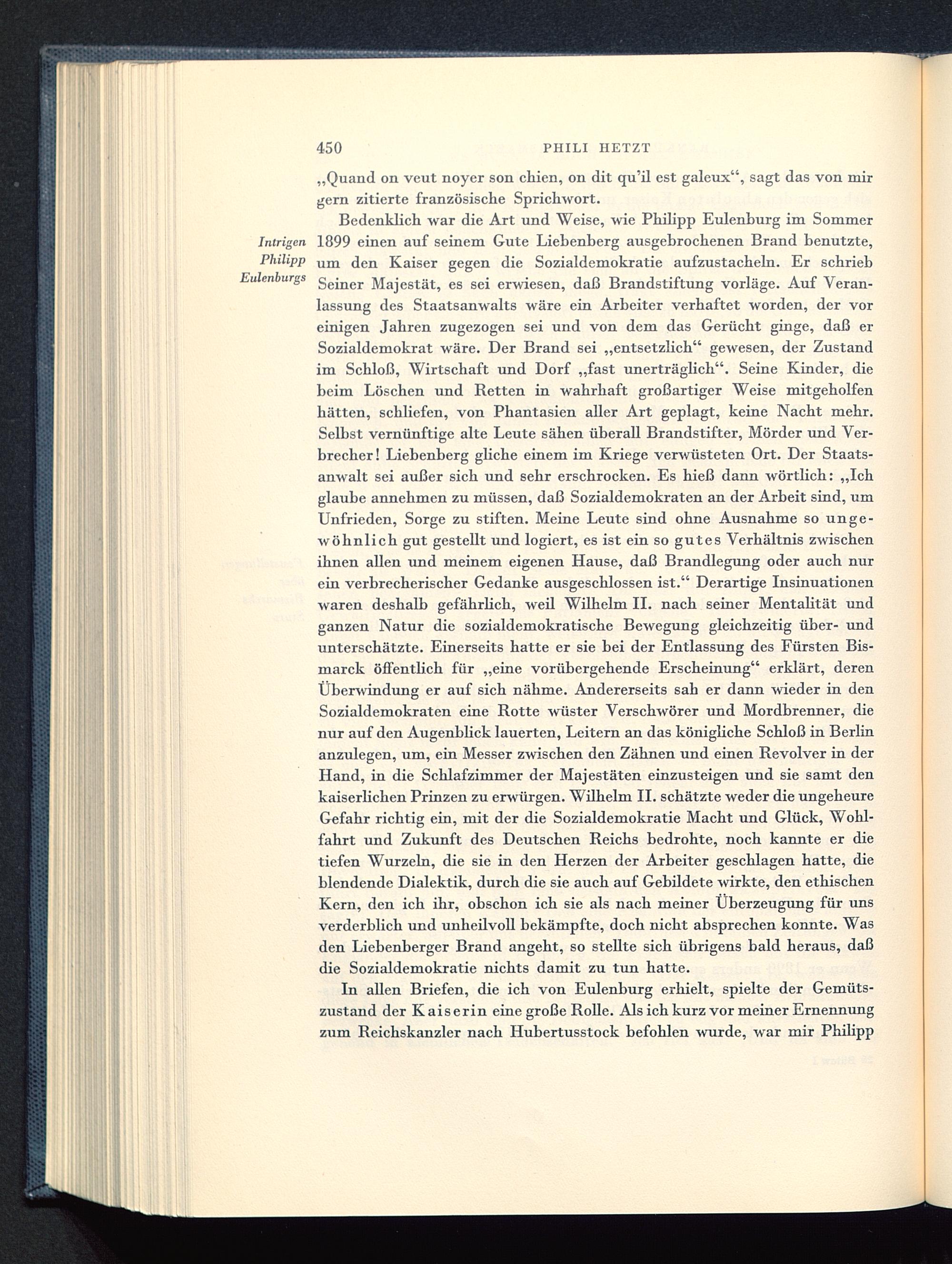 In allen Briefen, die ich von Eidenburg erhielt, spielte der Gemüts-zustand der Kaiserin eine große Rolle. Als ich kurz vor meiner Ernennungzum Reichskanzler nach Hubertusstock befohlen wurde, war mir Philipp