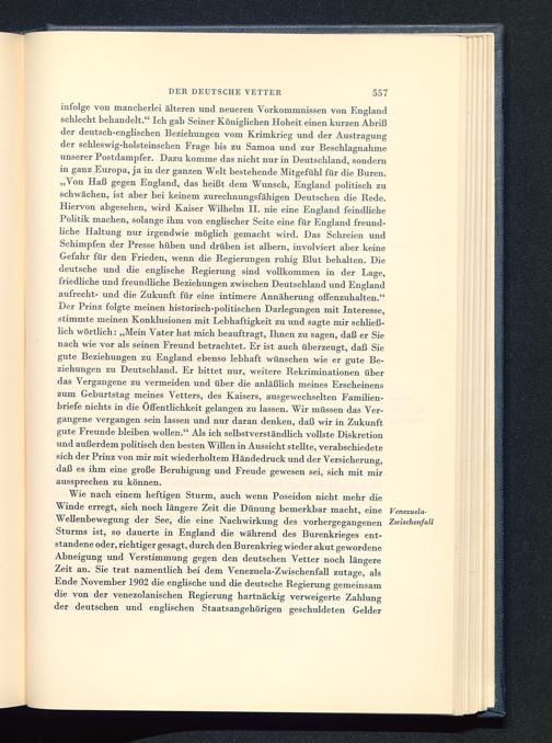 Wie nach einem heftigen Sturm, auch wenn Poseidon nicht mehr dieWinde erregt, sich noch längere Zeit die Dünung bemerkbar macht, eine VeiWellenbewegung der See, die eine Nachwirkung des vorhergegangenen Zu>Sturms ist, so dauerte in England die während des Burenkrieges ent-standene oder, richtiger gesagt, durch den Burenkrieg wieder akut gewordeneAbneigung und Verstimmung gegen den deutschen Vetter noch längereZeit an. Sie trat namentlich bei dem Venezuela -Zwischenfall zutage, alsEnde November 1902 die englische und die deutsche Regierung gemeinsamdie von der venezolanischen Regierung hartnäckig verweigerte Zahlungder deutschen und englischen Staatsangehörigen geschuldeten Gelder