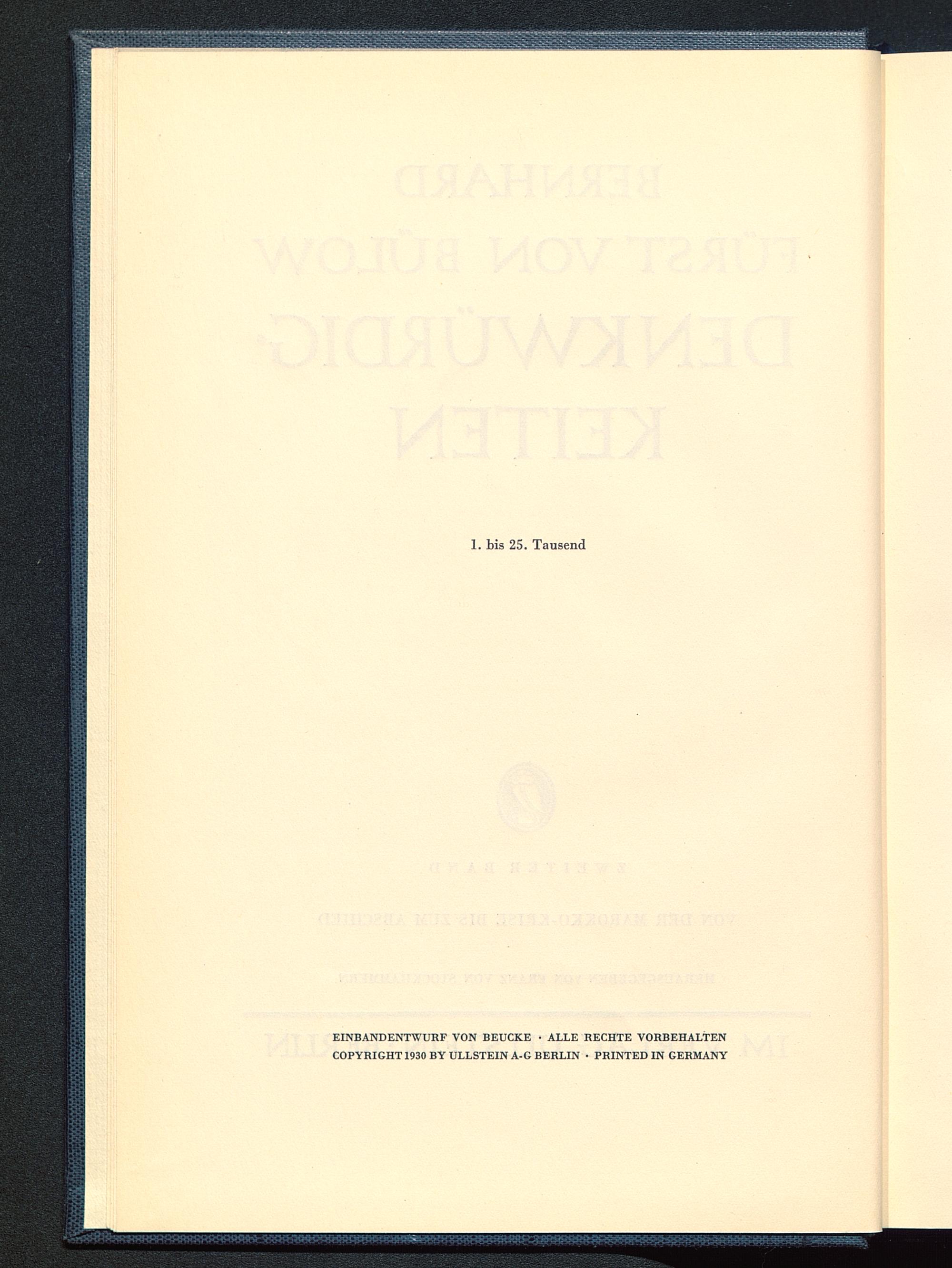 1. bis 25. TausendEINBANDENTWURF VON BEUCKE • ALLE RECHTE VORBEHALTENCOPYRIGHT 1930 BY ULLSTEIN A-G BERLIN • PRINTED IN GERMANY
