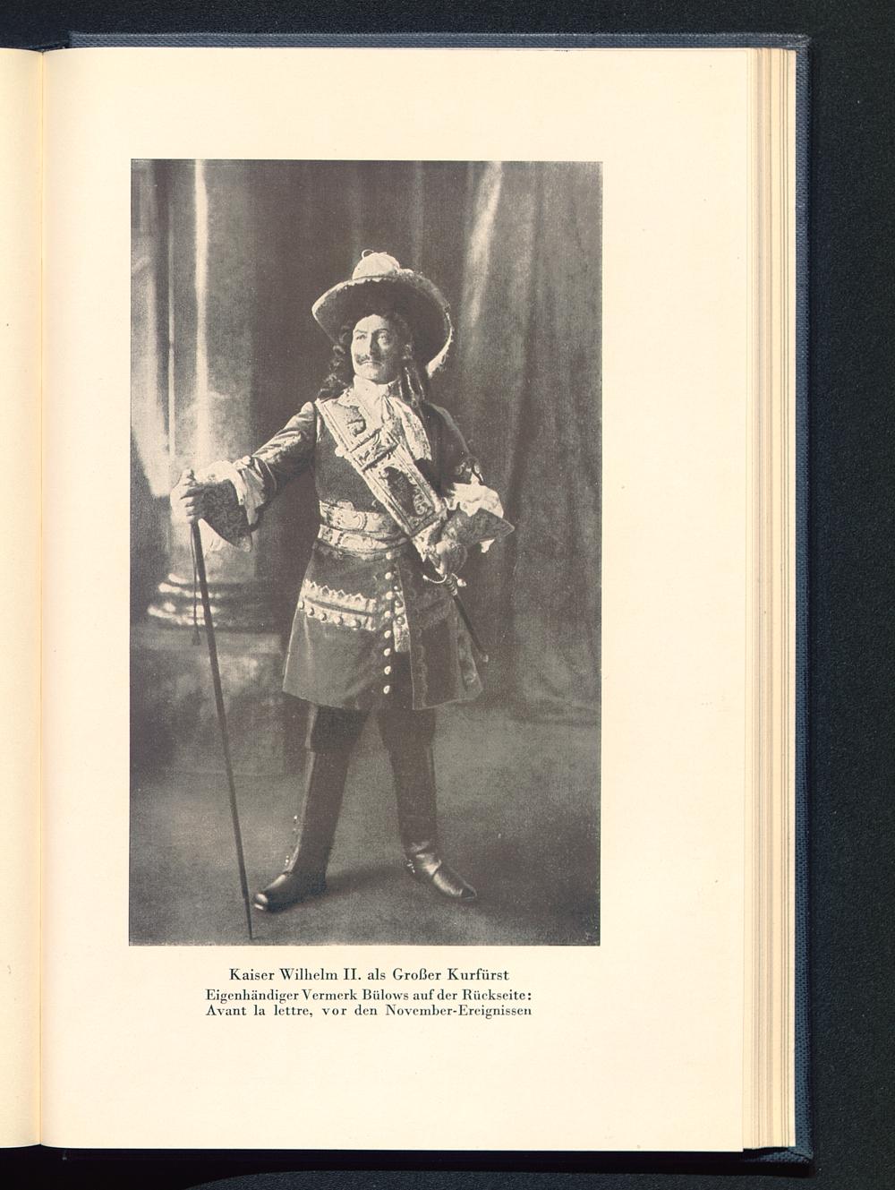 Kaiser Wilhelm II. als Großer KurfürstEigenhändiger Vermerk Bülows auf der Rückseite:Avant la lettre, vor den Novcmher-Ereignissen