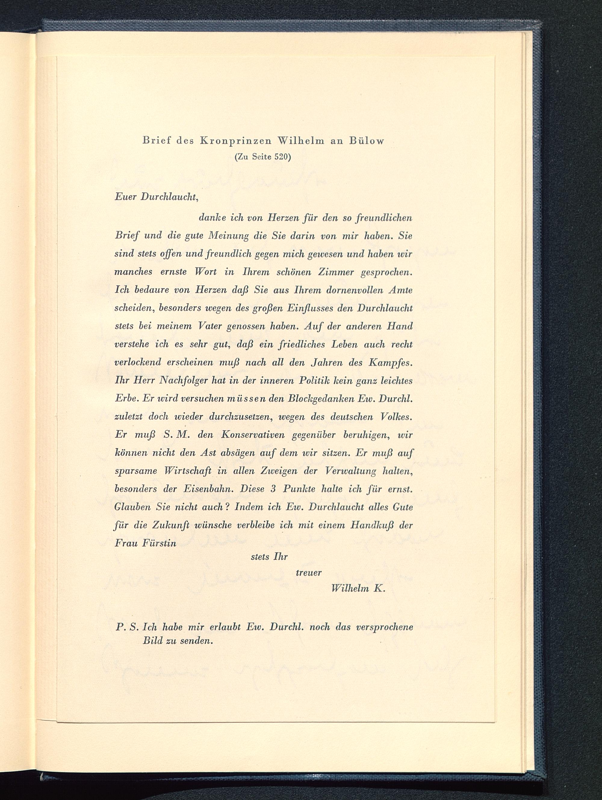 Brief des Kronprinzen Wilhelm an Bülow(Zu Seite 520)