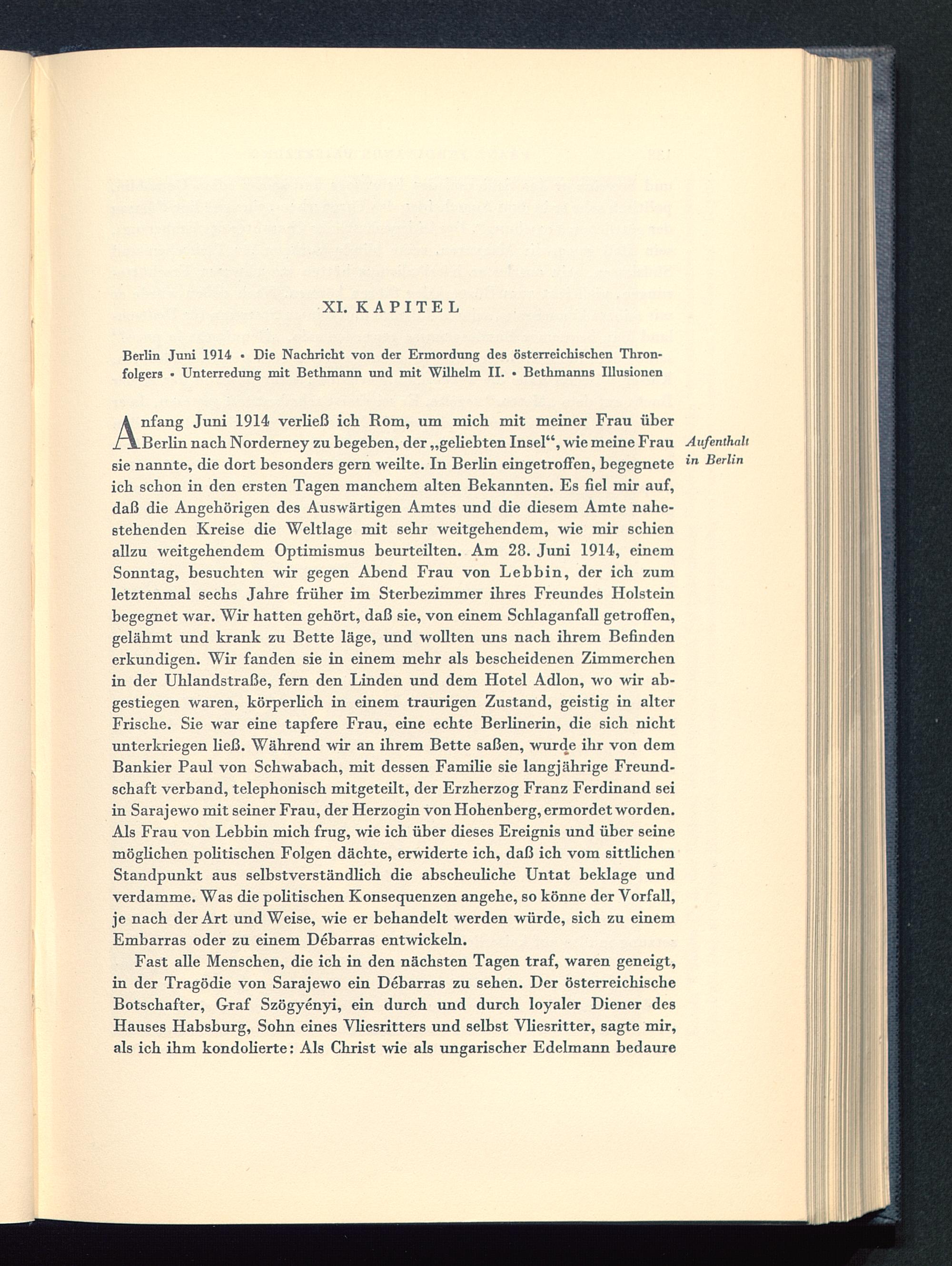 Berlin Juni 1914 • Die Nachricht von der Ermordung des österreichischen Thron-folgers • Unterredung mit Bethmann und mit Wilhelm II. • Bethmanns Illusionen