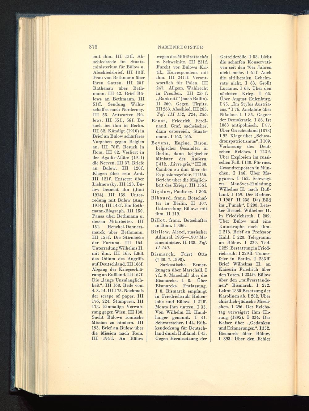 Bihourd, franz. Botschaf-ter in Berlin . II 107.Unterredung Bülows mitihm. II 119.