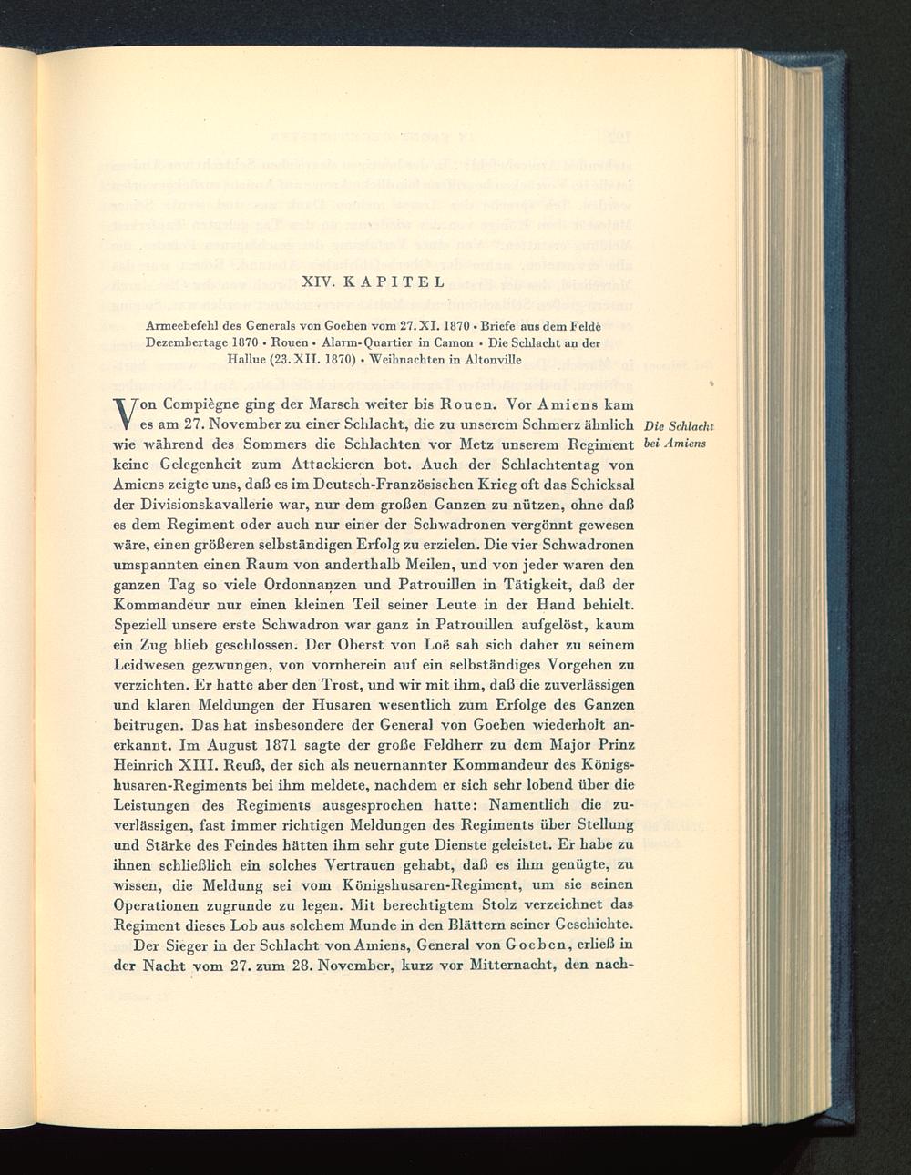 Armeebefehl des Generals von Goeben vom 27. XI. 1870 • Briefe ans dem FeldeDezembertage 1870 ■ Ronen • Alarm-Quartier in Camon • Die Schlacht an derHallue (23. XII. 1870) • Weihnachten in Altonville
