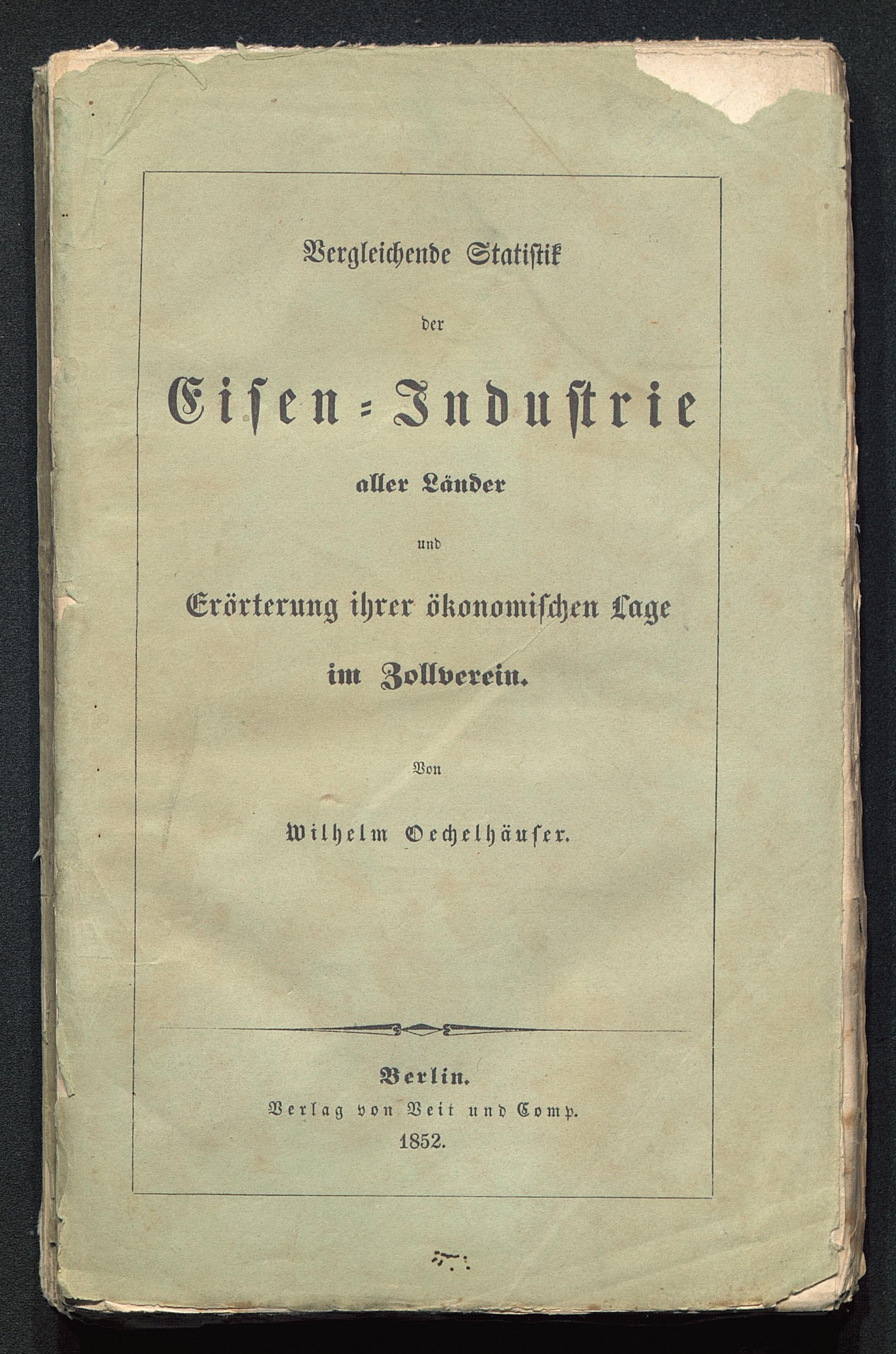 Vergleichende StatistikderEisen Zndu st riealler LänderundErörterung ihrer ökonomischen Lageim Zollverein.VonWilhelm Oechelhäuser .s«-?-^Berlin .Verlag von Veit und1852.C o m p.