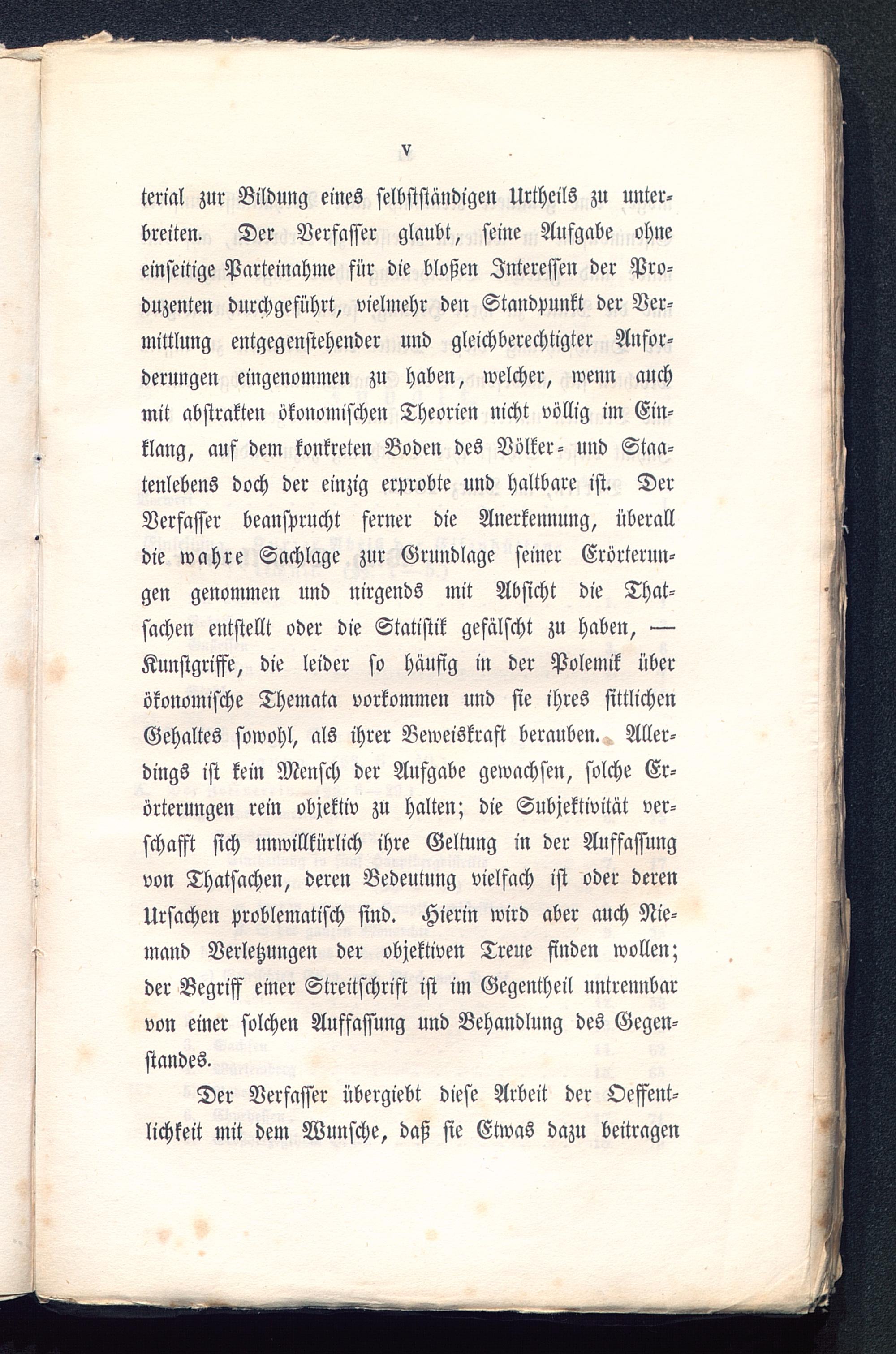 terial zur Bildung eines selbstständigen Urtheils zu unter-breiten. Der Verfasser glaubt, seine Aufgabe ohueeinseitige Parteinahme für die bloßen Interessen der Pro-duzenten durchgeführt, vielmehr den Standpunkt der Ver-mittlung entgegenstehender und gleichberechtigter Anfor-derungen eingenommen zu haben, welcher, wenn auchmit abstrakten ökonomischen Theorien nicht völlig im Ein-klang, auf dem konkreten Boden des Völker- und Staa-tenlebens doch der einzig erprobte und haltbare ist. DerVerfasser beansprucht ferner die Anerkennung, überalldie wahre Sachlage zur Grundlage seiner Erörterun-gen genommen und uirgends mit Absicht die That-sachen entstellt oder die Statistik gefälscht zu haben, >—Kunstgriffe, die leider so häufig in der Polemik überökonomische Themata vorkommen und sie ihres sittlichenGehaltes sowohl, als ihrer Beweiskraft berauben. Aller-dings ist kein Mensch der Aufgabe gewachsen, solche Er-örterungen rein objektiv zu halten; die Subjektivität ver-schafft sich unwillkürlich ihre Geltung in der Auffassungvon Thatsachen , deren Bedeutung vielfach ist oder derenUrsachen problematisch sind. Hierin wird aber auch Nie-mand Verletzungen der objektiven Treue finden wollen;der Begriff einer Streitschrift ist im Gegentheil untrennbarvon einer solchen Auffassung und Behandlung des Gegen-standes.