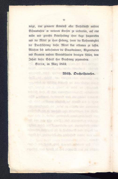 möge, eine genauere Kenntniß aller Verhältnisse unsererEisenindustrie in weiteren Kreisen zu verbreiten, auf einemilde und gerechte Beurtheilung ihrer Lage hinzuwirkenund die Mittel zu ihrer Hebung, sowie die Nothwendigkeitder Durchführung dieser Mittel klar erkennen zu lassen.Möchten sich insbesondere die Staatsmänner, Abgeordnetenund Beamten unserer Vereinsstaaten bewogen fühlen, demInhalt dieser Schrift ihre Beachtung zuzuwenden.Berlin , im März 1852.