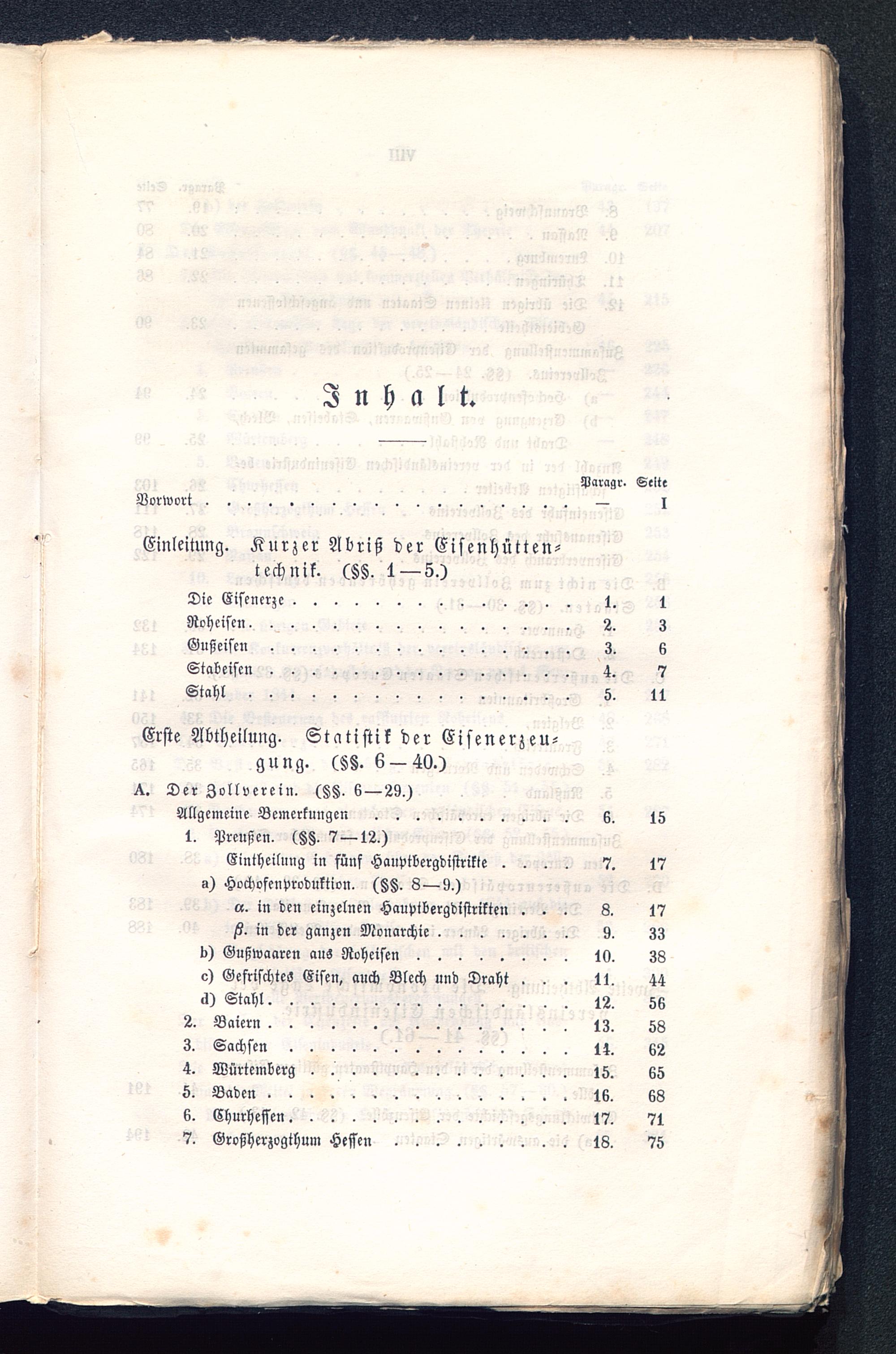 Erste Abtheilung. Statistik der Eisenerzeu-gung. (s§. 6 — 40.)Der Zollverein. (§§. 6 — 29.)