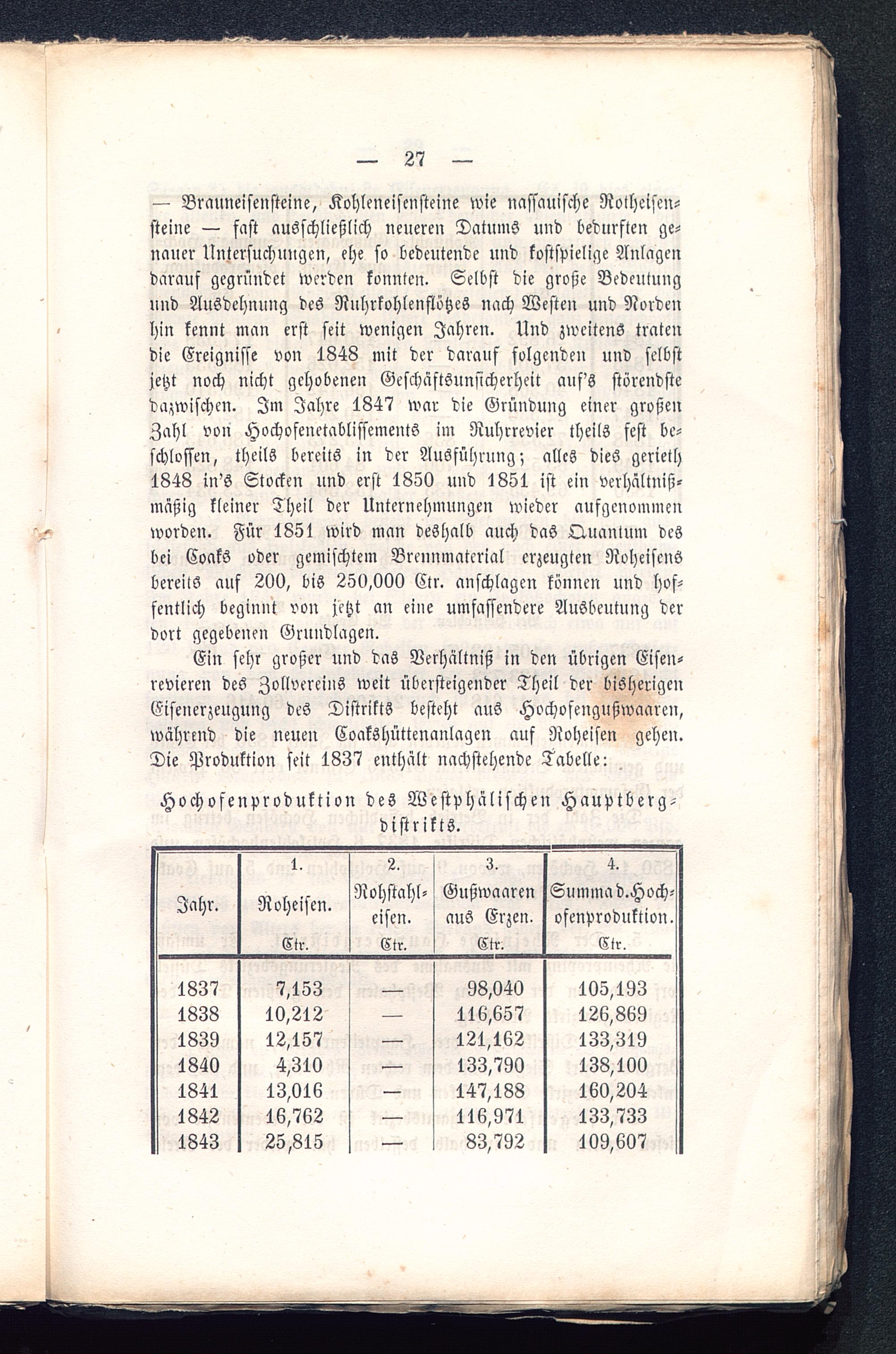 Hochofenproduktion des Westphälischen Hauptberg-distrikts.