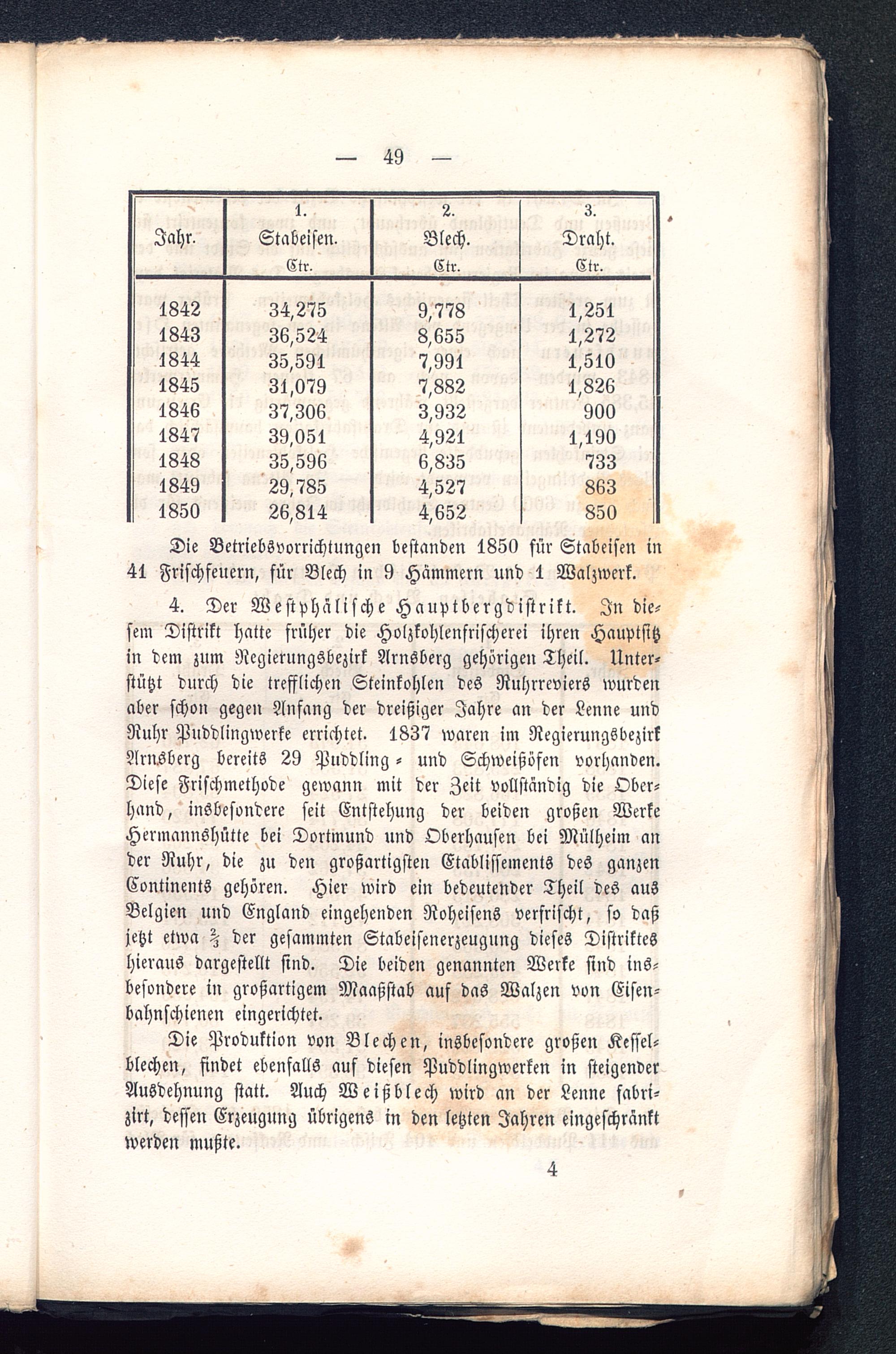 Die Betriebsvorrichtungen bestanden 1850 für Stabeisen in41 Frischfeuern, für Blech in 9 Hämmern und 1 Walzwerk.
