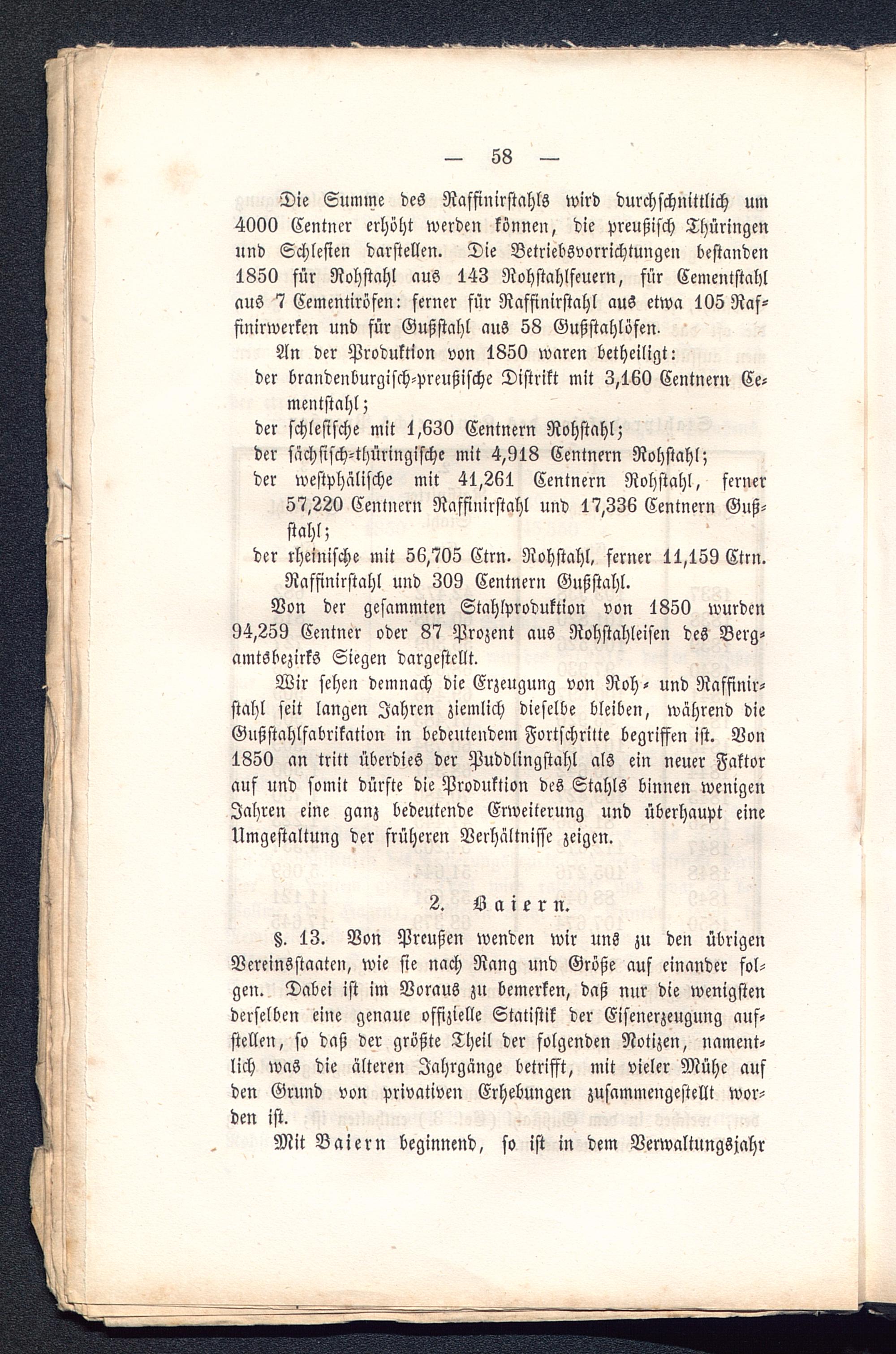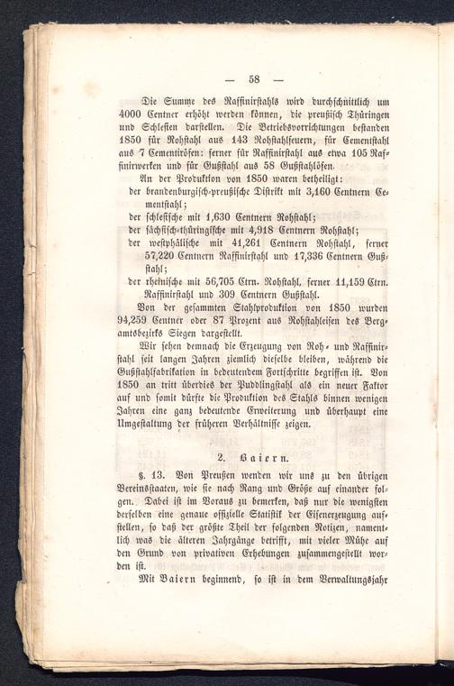 §. 13. Von Preußen wenden wir uns zu den übrigenVereinsstaaten, wie sie nach Rang und Größe auf einander fol-gen. Dabei ist im Voraus zu bemerken, daß nur die wenigstenderselben eine genaue offizielle Statistik der Eisenerzeugung auf-stellen, so daß der größte Theil der folgenden Notizen, nament-lich was die älteren Jahrgänge betrifft, mit vieler Mühe aufden Grnnd von privativen Erhebungen zusammengestellt wor-den ist.