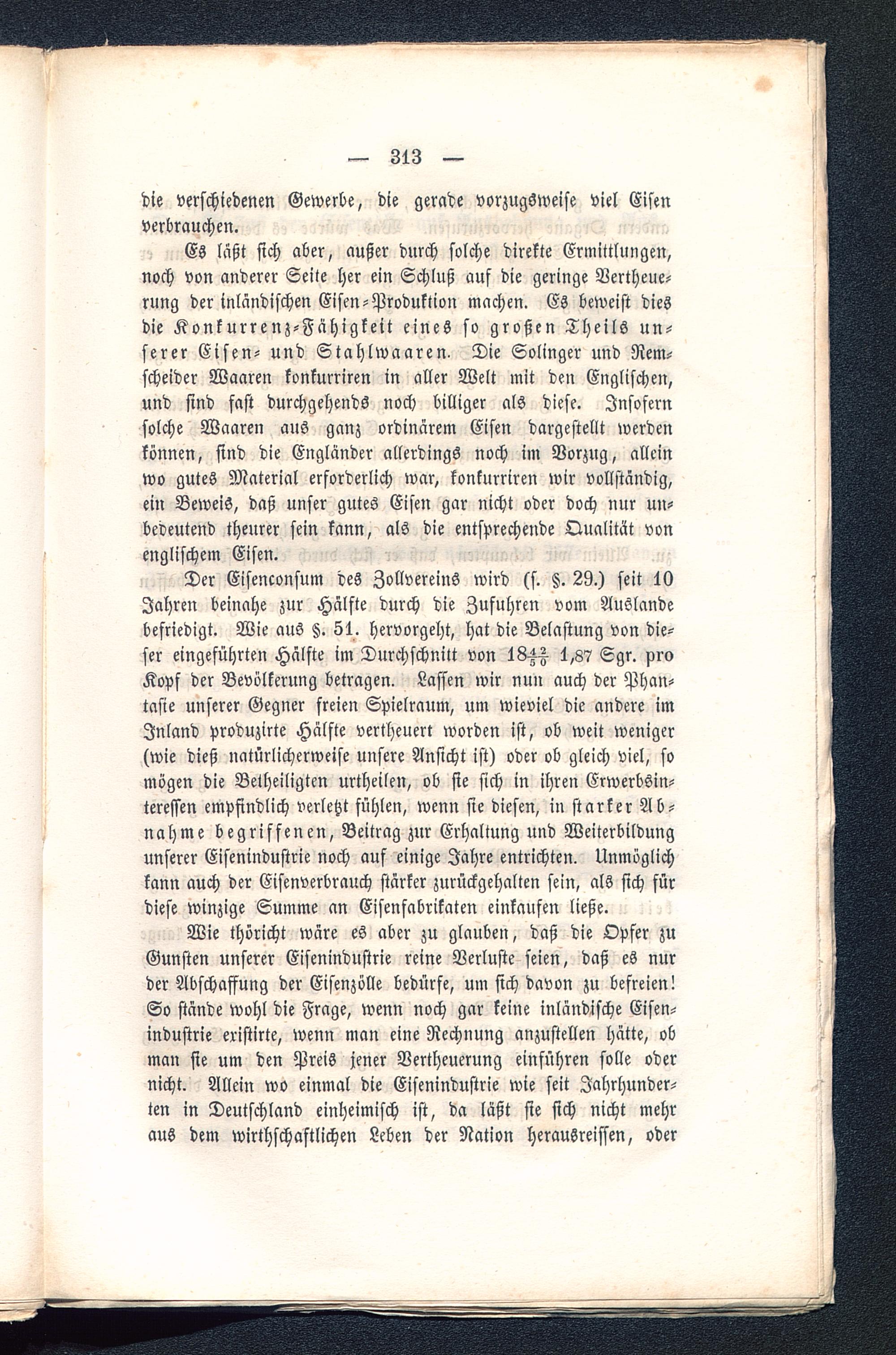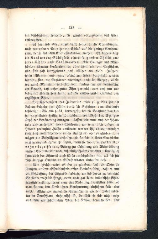 Es läßt sich aber, außer durch solche direkte Ermittlungen,noch von anderer Seite her ein Schluß auf die geringe Vertheue-rung der inländischen Eisen-Produktion machen. Es beweist diesdie Konkurrenz-Fähigkeit eines so großen Theils un-serer Eisen- und Stahlwaaren, Die Solinger und Rem-scheider Waaren konkurriren in aller Welt mit den Englischen,und sind fast durchgehends noch billiger als diese. Insofernsolche Waaren aus ganz ordinärem Eisen dargestellt werdenkönnen, sind die Engländer allerdings noch im Vorzug, alleinwo gutes Material erforderlich war, konkurriren wir vollständig,ein Beweis, daß unser gutes Eisen gar nicht oder doch nur un-bedeutend theurer sein kann, als die entsprechende Qualität vonenglischem Eisen.