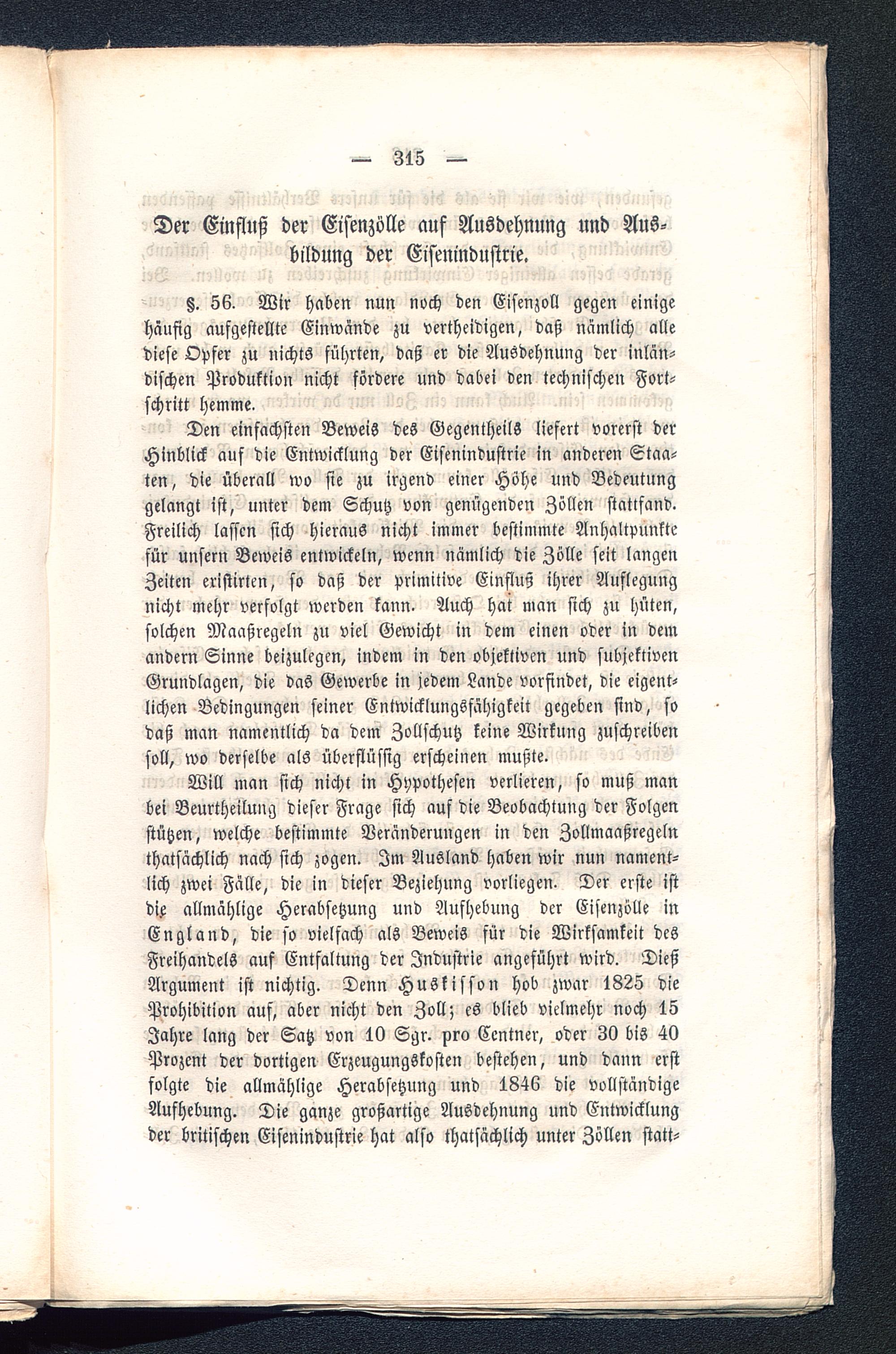 §. 56. Wir haben nun noch den Eisenzoll gegen einigehäufig aufgestellte Einwände zu vertheidigen, daß nämlich allediese Opfer zu nichts führten, daß er die Ausdehnung der inlän-dischen Produktion nicht fördere und dabei den technischen Fort-schritt hemme.