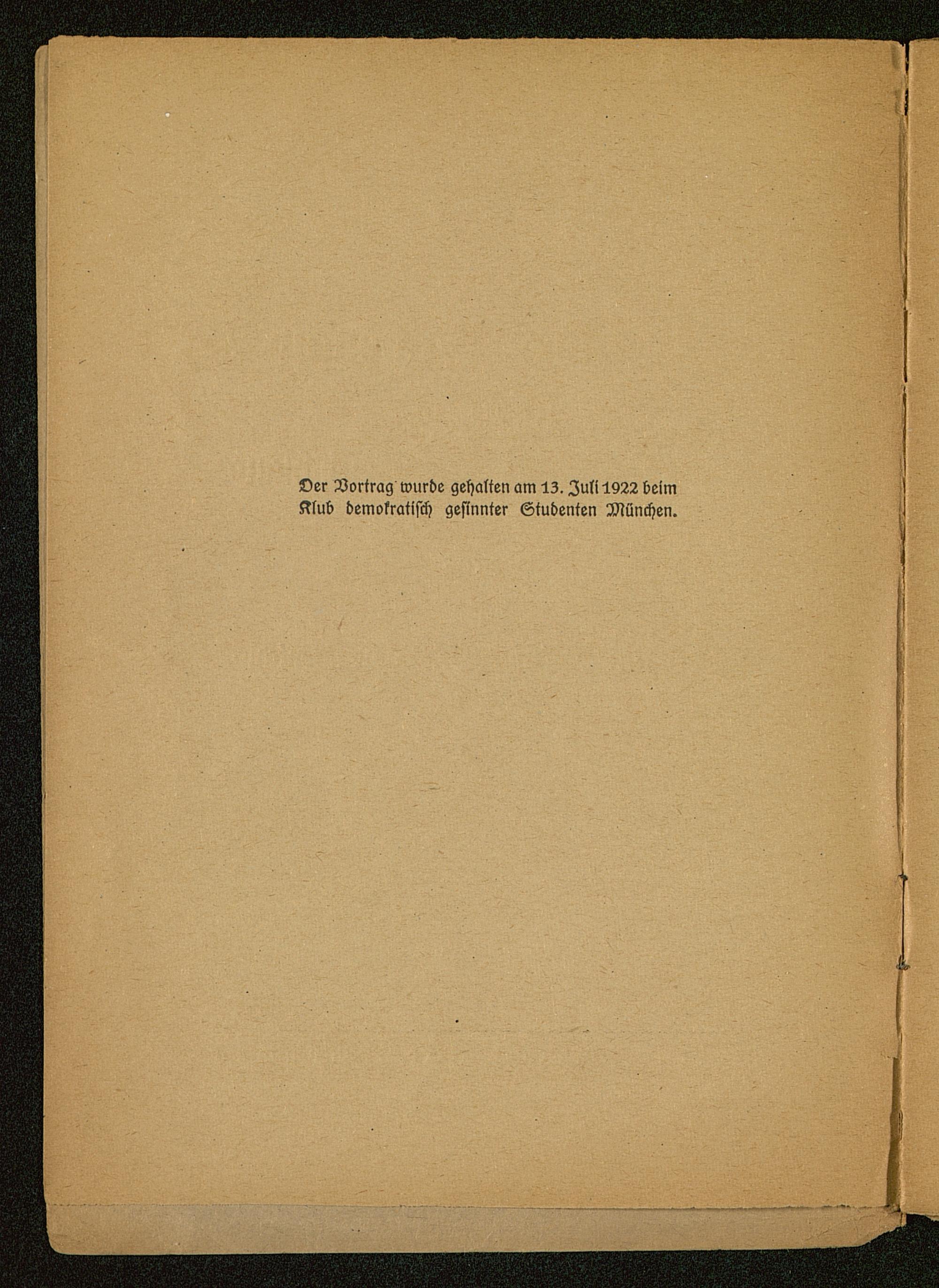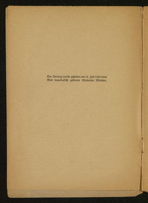 Der Vortrag wurde gehalten am 13. Juli 1,922 beimKlub demokratisch gesinnter Studenten München .