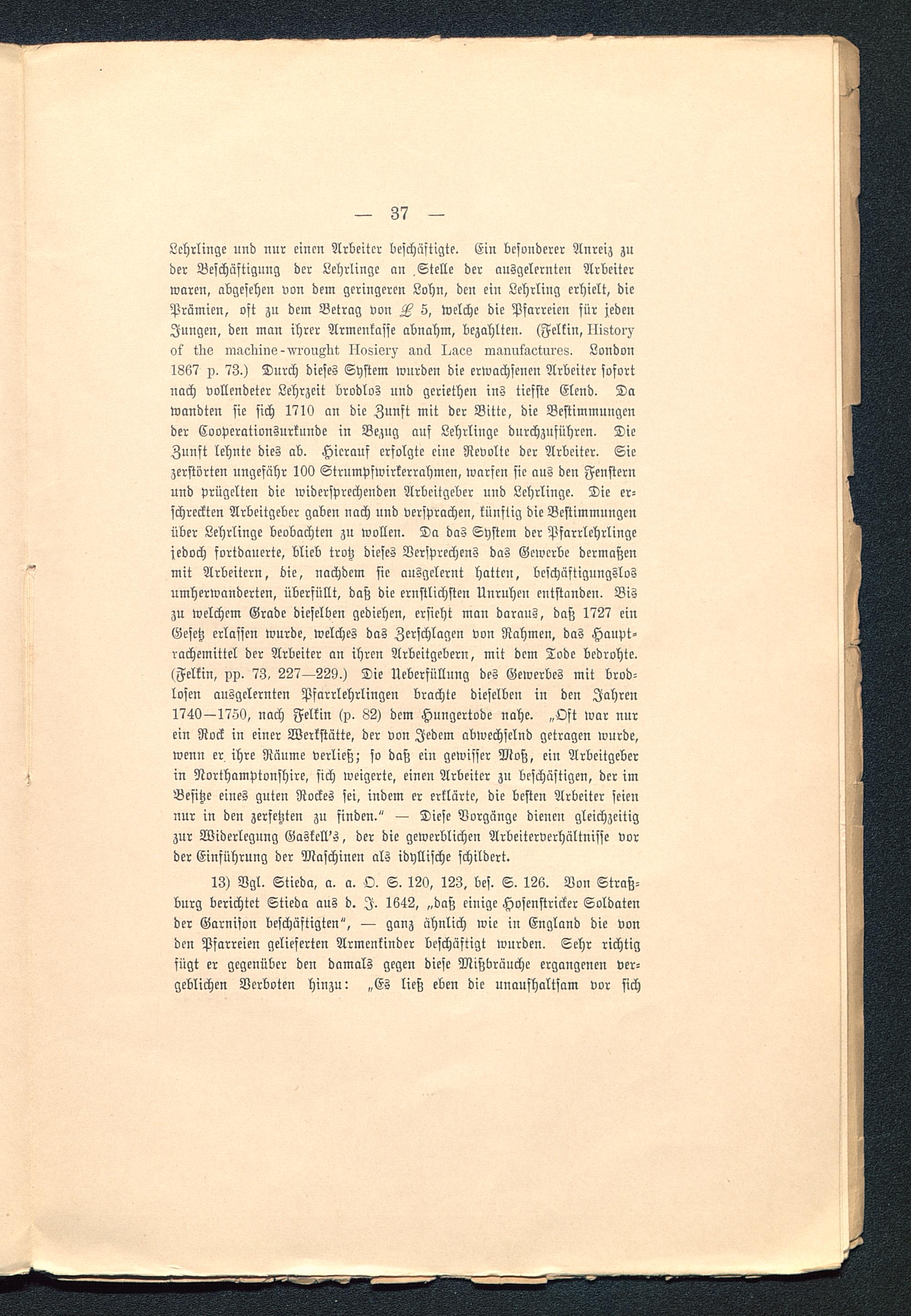 13) Vgl. Stieda, a. a. O. S. 120, 123. bes. S. 126. Von Straß-burg berichtet Stieda aus d. I. 1642, „daß einige Hosenstricker Soldatender Garnison beschäftigten", — ganz ahnlich wie in England die vonden Pfarreien gelieferten Armenkindcr beschäftigt wurden. Sehr richtigfügt er gegenüber den damals gegen diese Mißbrüuche ergangenen ver-geblichen Verboten hinzu: „Es ließ eben die unaufhaltsam vor sich