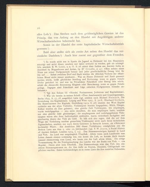 Bald aber stellte sich als zweite Art neben den Handel das ver-zinsliche Darlehen. 3 ) Auch hier zuerst nur gegenüber dem Fremden.