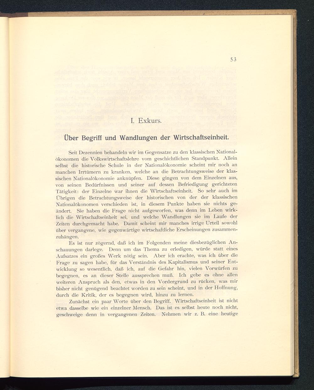 Seit Dezennien behandeln wir im Gegensätze zu den klassischen National-ökonomen die Volkswirtschaftslehre vom geschichtlichen Standpunkt. Alleinselbst die historische Schule in der Nationalökonomie scheint mir noch anmanchen Irrtümern zu kranken, welche an die Betrachtungsweise der klas-sischen Nationalökonomie anknüpfen. Diese gingen von dem Einzelnen aus,von seinen Bedürfnissen und seiner auf dessen Befriedigung gerichtetenTätigkeit: der Einzelne war ihnen die Wirtschaftseinheit. So sehr auch imÜbrigen die Betrachtungsweise der historischen von der der klassischenNational Ökonomen verschieden ist, in diesem Punkte haben sie nichts ge-ändert. Sie haben die Frage nicht aufgeworfen, was denn im Leben wirk-lich die Wirtschaftseinheit sei, und welche Wandlungen sie im Laufe derZeiten durchgemacht habe. Damit scheint mir manches irrige Urteil sowohlüber vergangene, wie gegenwärtige wirtschaftliche Erscheinungen zusammen-zuhängen.