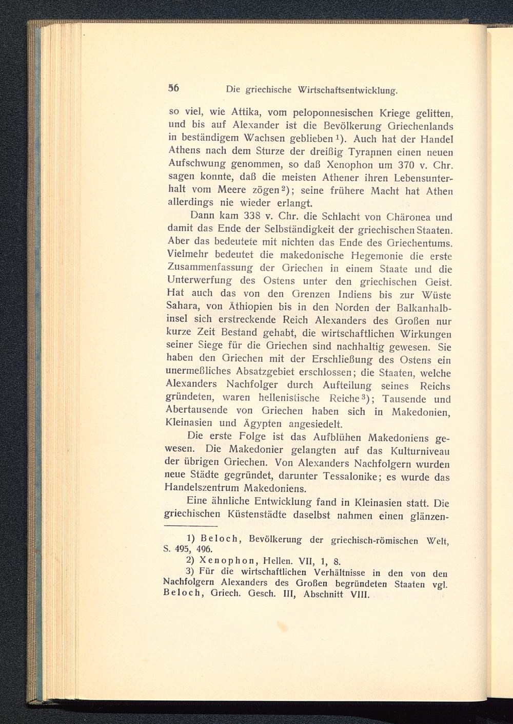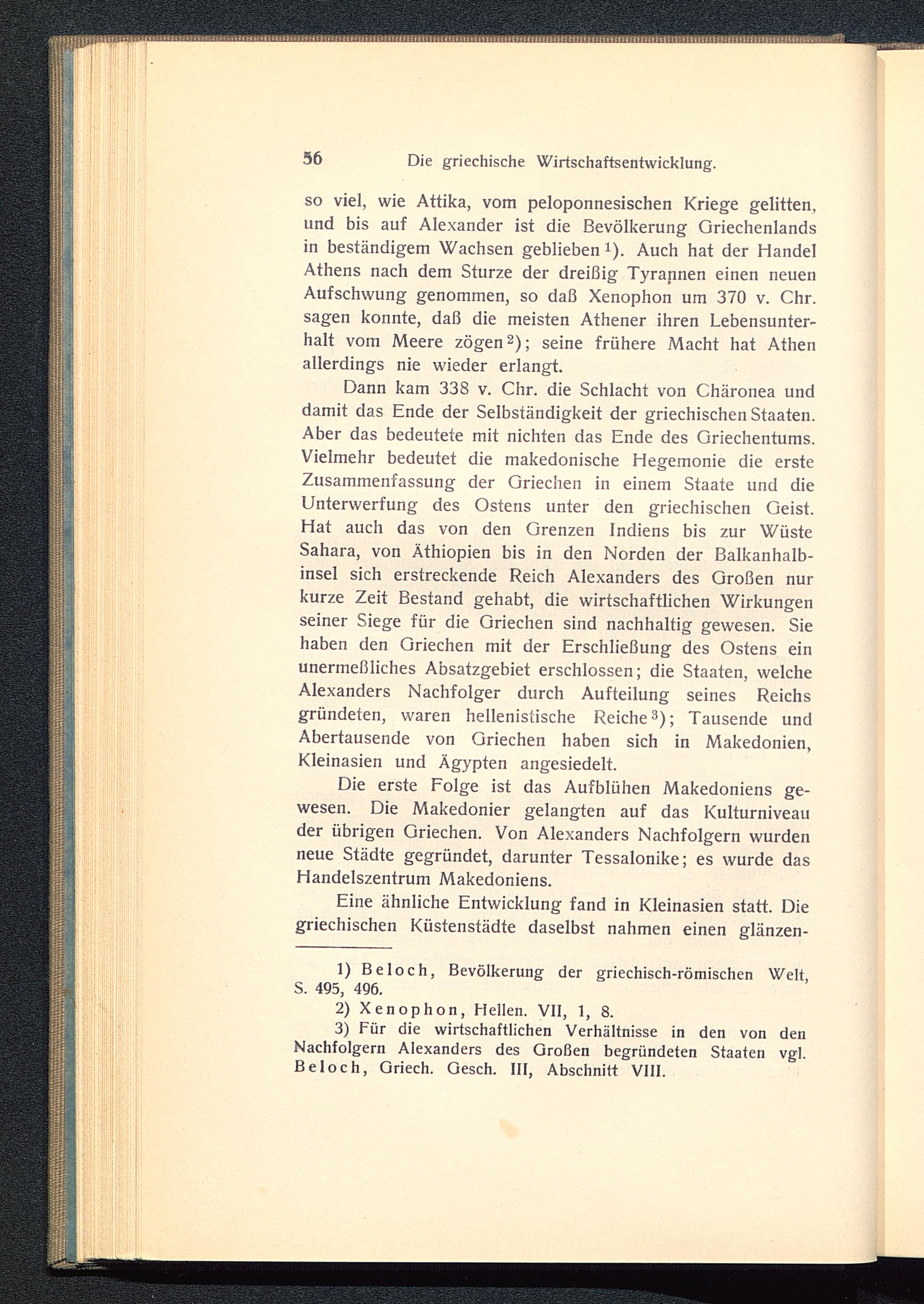 so viel, wie Attika, vom peloponnesischen Kriege gelitten,und bis auf Alexander ist die Bevölkerung Griechenlands in beständigem Wachsen geblieben 1 ). Auch hat der HandelAthens nach dem Sturze der dreißig Tyrapnen einen neuenAufschwung genommen, so daß Xenophon um 370 v. Chr.sagen konnte, daß die meisten Athener ihren Lebensunter-halt vom Meere zögen 2 ); seine frühere Macht hat Athen allerdings nie wieder erlangt.