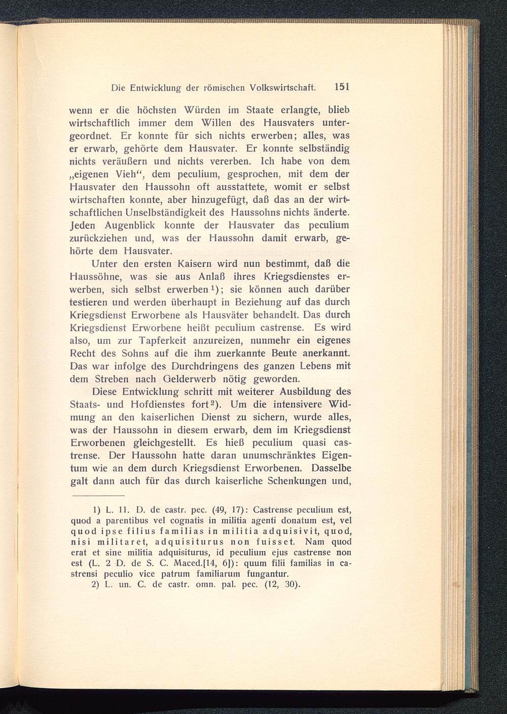 Die Entwicklung der römischen Volkswirtschaft. 151