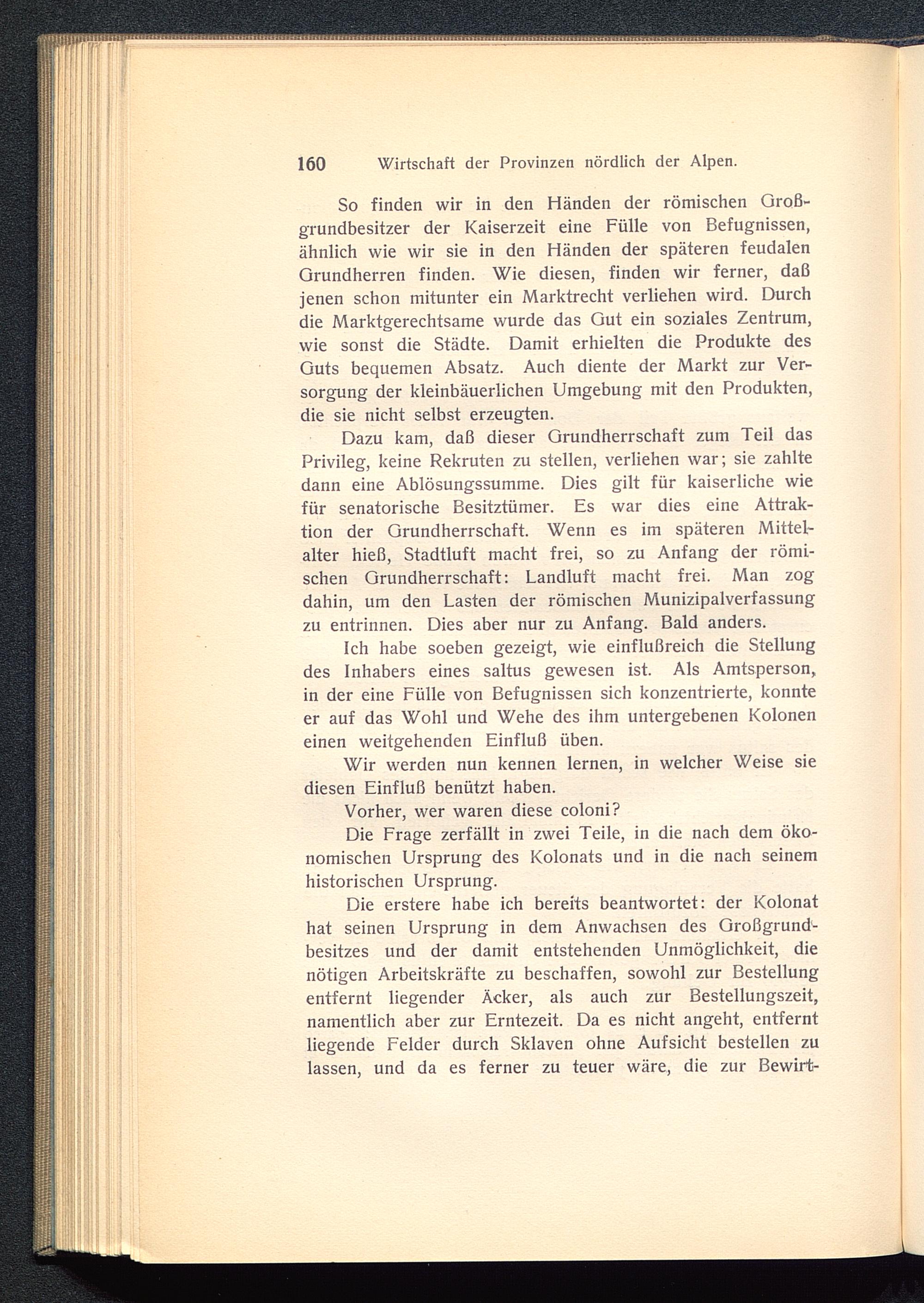 Die Frage zerfällt in zwei Teile, in die nach dem öko-nomischen Ursprung des Kolonats und in die nach seinemhistorischen Ursprung.