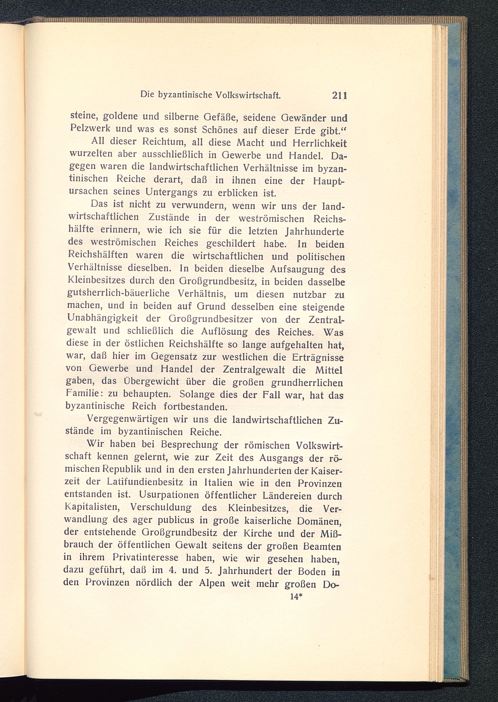 All dieser Reichtum, all diese Macht und Herrlichkeitwurzelten aber ausschließlich in Gewerbe und Handel. Da-gegen waren die landwirtschaftlichen Verhältnisse im byzan-tinischen Reiche derart, daß in ihnen eine der Hauptrursachen seines Untergangs zu erblicken ist.
