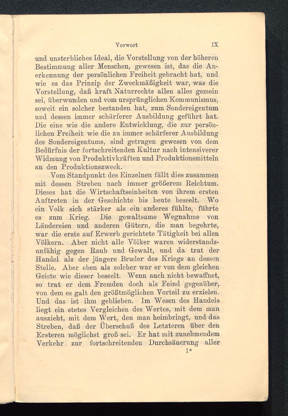 und unsterbliches Ideal, die Vorstellung von der höherenBestimmung aller Menschen, gewesen ist, das die An-erkennung der persönlichen Freiheit gebracht hat, undwie es das Prinzip der Zweckmäßigkeit war, was dieVorstellung, daß kraft Naturrechts allen alles gemeinsei, überwunden und vom ursprünglichen Kommunismus,soweit ein solcher bestanden hat, zum Sondereigentumund dessen immer schärferer Ausbildung geführt hat.Die eine wie die andere Entwicklung, die zur persön-lichen Freiheit wie die zu immer schärferer Ausbildungdes Sondereigentums, sind getragen gewesen von demBedürfnis der fortschreitenden Kultur nach intensivererWidmung von Produktivkräften und Produktionsmittelnan den Produktionszweck.