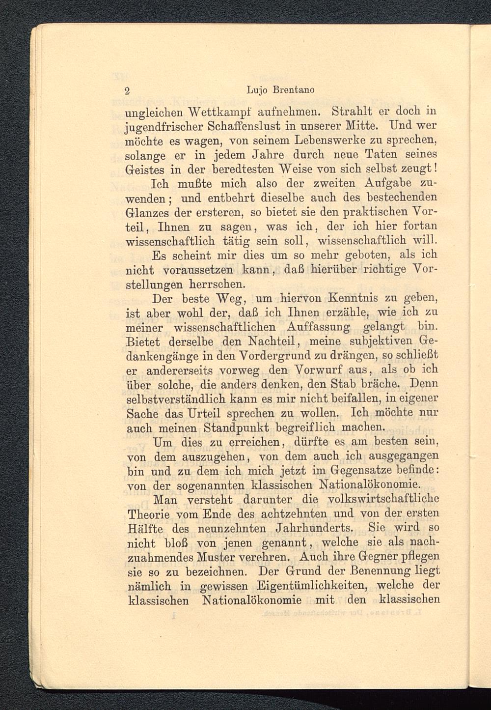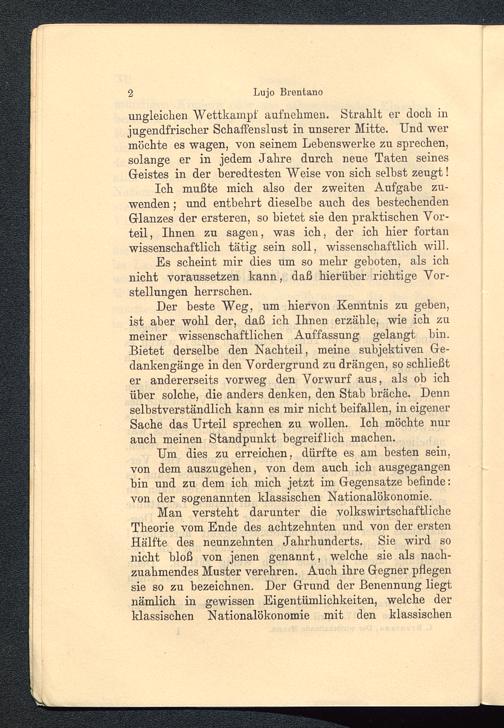 Um dies zu erreichen, dürfte es am besten sein,von dem auszugehen, von dem auch ich ausgegangenbin und zu dem ich mich jetzt im Gegensätze befinde:von der sogenannten ldassischen Nationalökonomie.