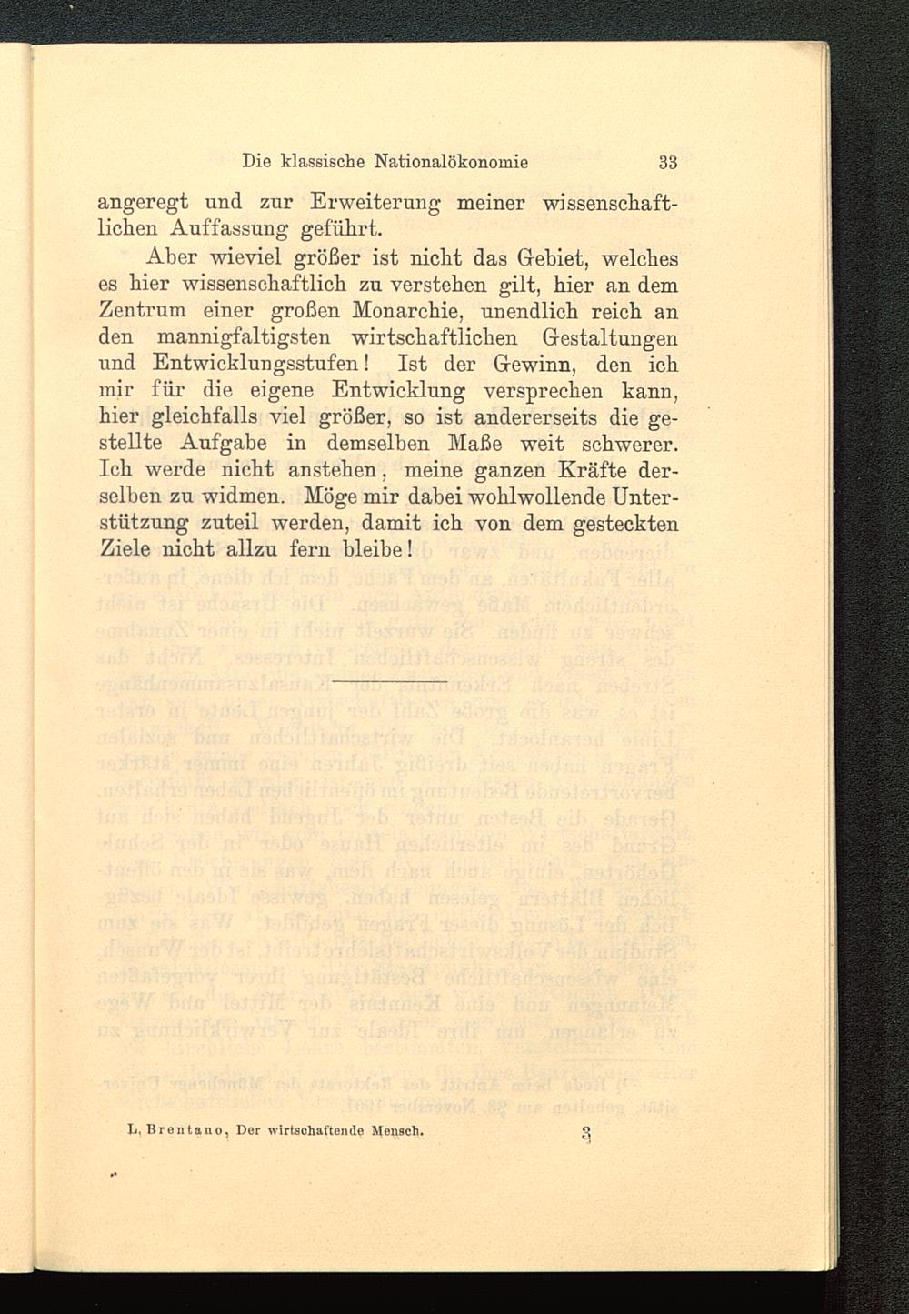 Aber wieviel größer ist nicht das Gebiet, welcheses hier wissenschaftlich zu verstehen gilt, hier an demZentrum einer großen Monarchie, unendlich reich anden mannigfaltigsten wirtschaftlichen Gestaltungenund Entwicklungsstufen! Ist der Gewinn, den ichmir für die eigene Entwicklung versprechen bann,hier gleichfalls viel größer, so ist andererseits die ge-stellte Aufgabe in demselben Maße weit schwerer.Ich werde nicht anstehen, meine ganzen Kräfte der-selben zu widmen. Möge mir dabei wohlwollende Unter-stützung zuteil werden, damit ich von dem gestecktenZiele nicht allzu fern bleibe!