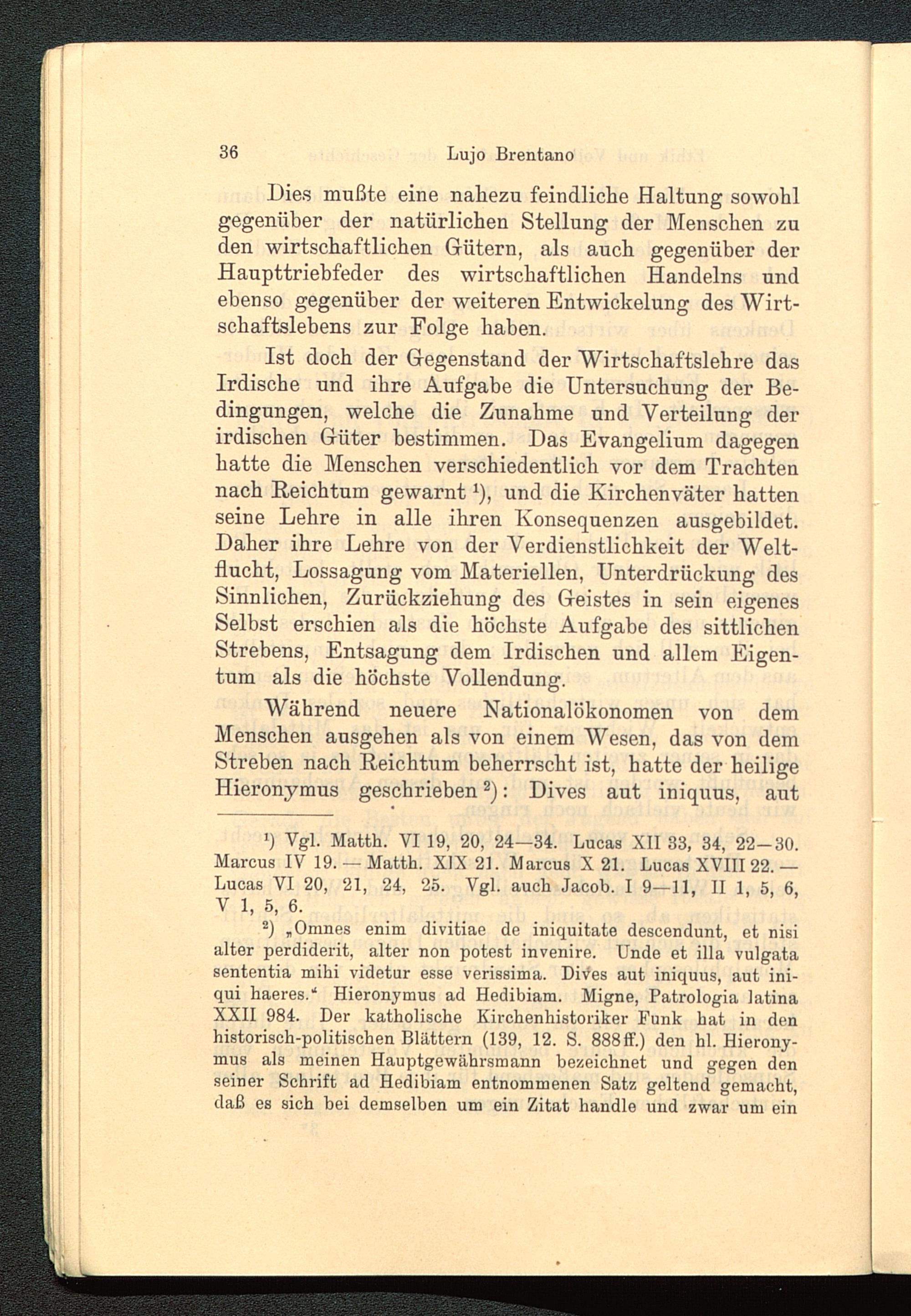 Während neuere Nationalökonomen von demMenschen ausgehen als von einem Wesen, das von demStreben nach Reichtum beherrscht ist, hatte der heiligeHieronymus geschrieben 2 ): Dives aut iniquus, aut