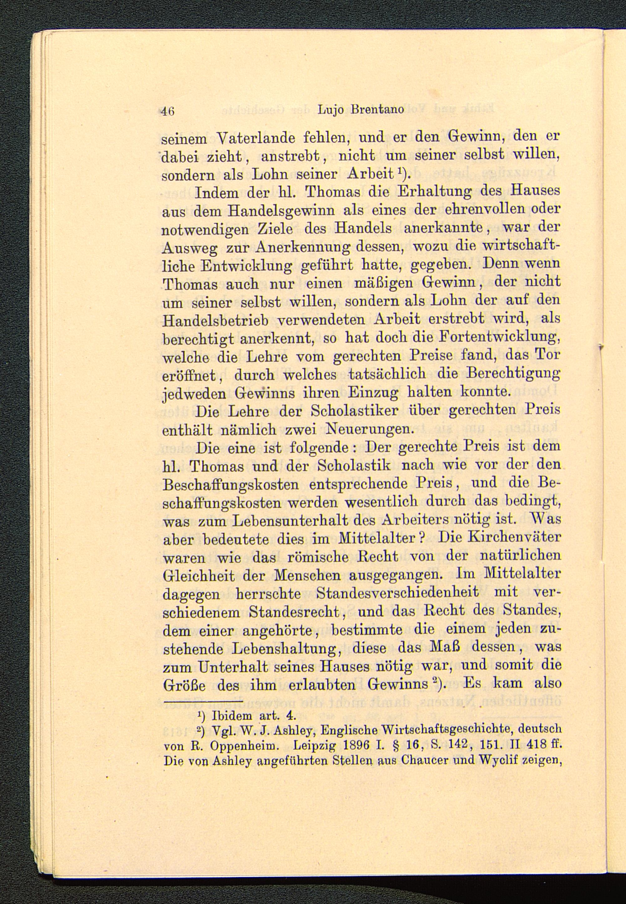 2 ) Vgl. W. J. Ashley, Englische Wirtschaftsgeschichte, deutschvon R. Oppenheim. Leipzig 1896 I. § 16, S. 142, 151. II 418 ff.Die von Ashley angeführten Stellen aus Chaucer und Wyclif zeigen,