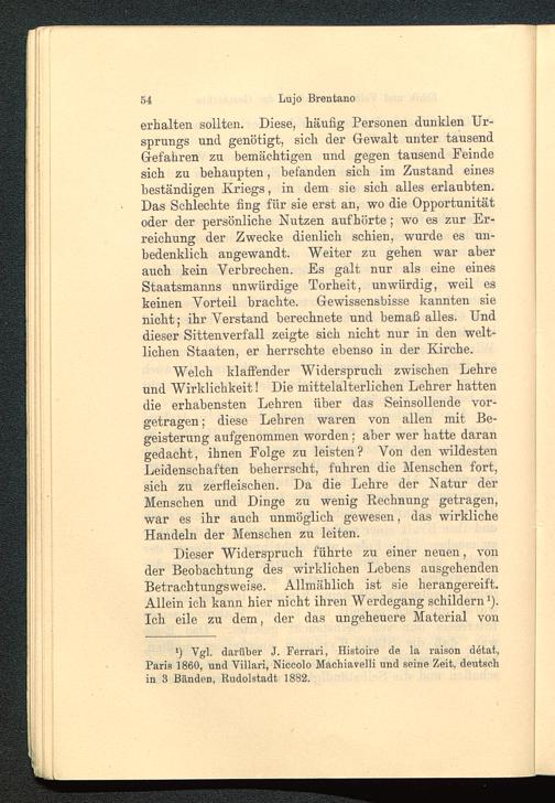 Welch klaffender Widerspruch zwischen Lehreund Wirklichkeit! Die mittelalterlichen Lehrer hattendie erhabensten Lehren über das Seinsollende vor-getragen ; diese Lehren waren von allen mit Be-geisterung aufgenommen worden; aber wer hatte darangedacht, ihnen Folge zu leisten? Von den wildestenLeidenschaften beherrscht, fuhren die Menschen fort,sich zu zerfleischen. Da die Lehre der Natur derMenschen und Dinge zu wenig Rechnung getragen,war es ihr auch unmöglich gewesen, das wirklicheHandeln der Menschen zu leiten.