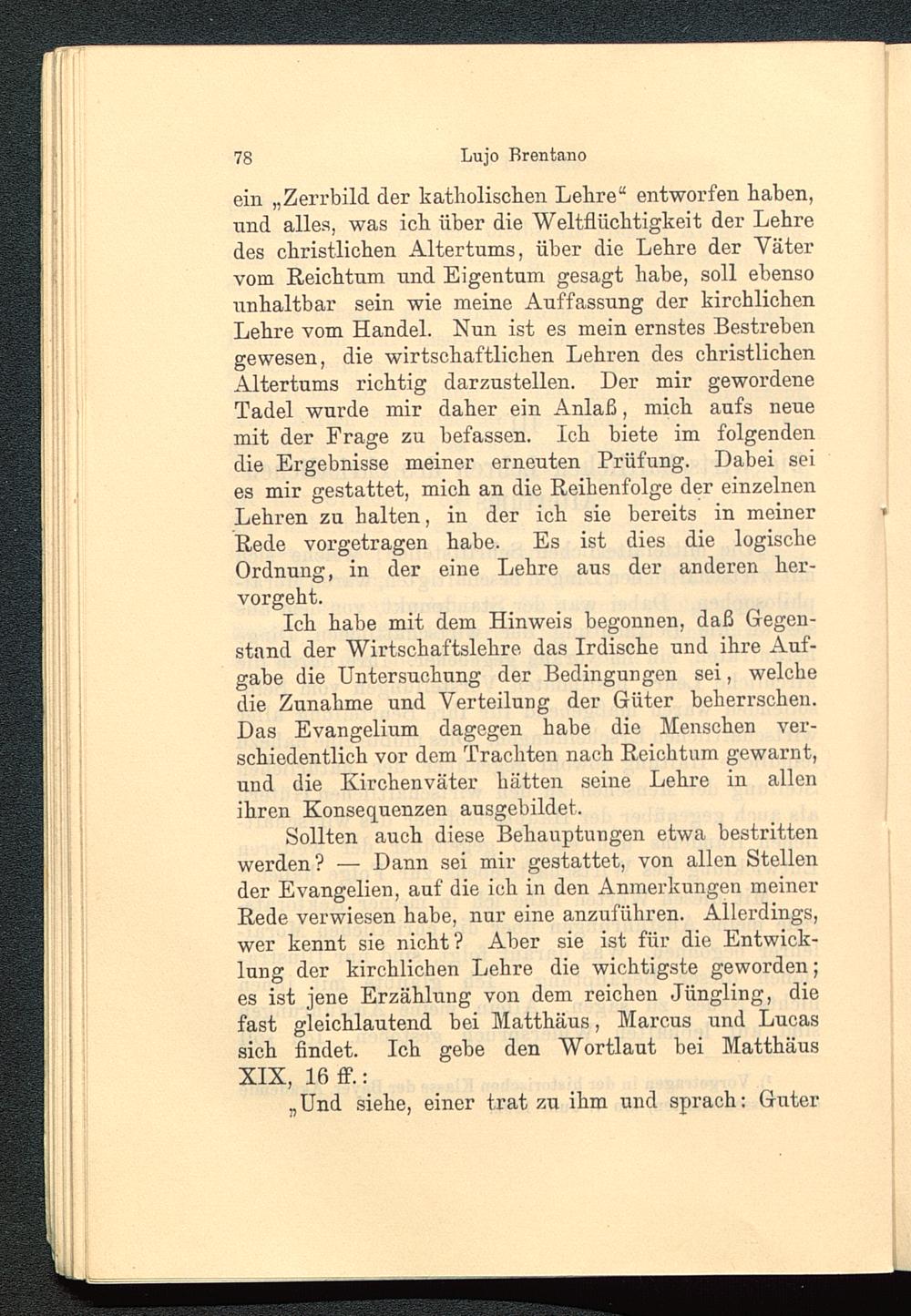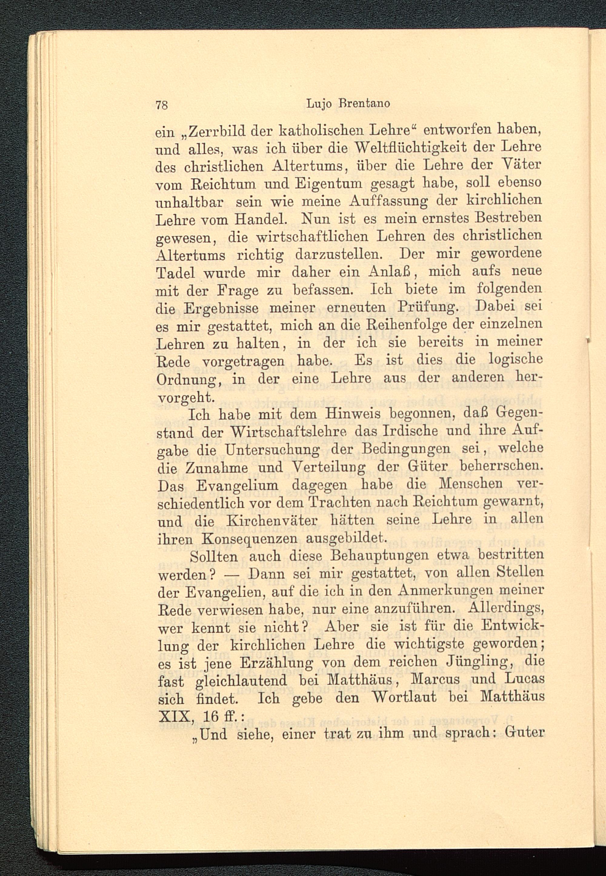 Ich habe mit dem Hinweis begonnen, daß Gegen-stand der Wirtschaftslehre das Irdische und ihre Auf-gabe die Untersuchung der Bedingungen sei, welchedie Zunahme und Verteilung der Güter beherrschen.Das Evangelium dagegen habe die Menschen ver-schiedentlich vor dem Trachten nach Reichtum gewarnt,und die Kirchenväter hätten seine Lehre in allenihren Konsequenzen ausgebildet.