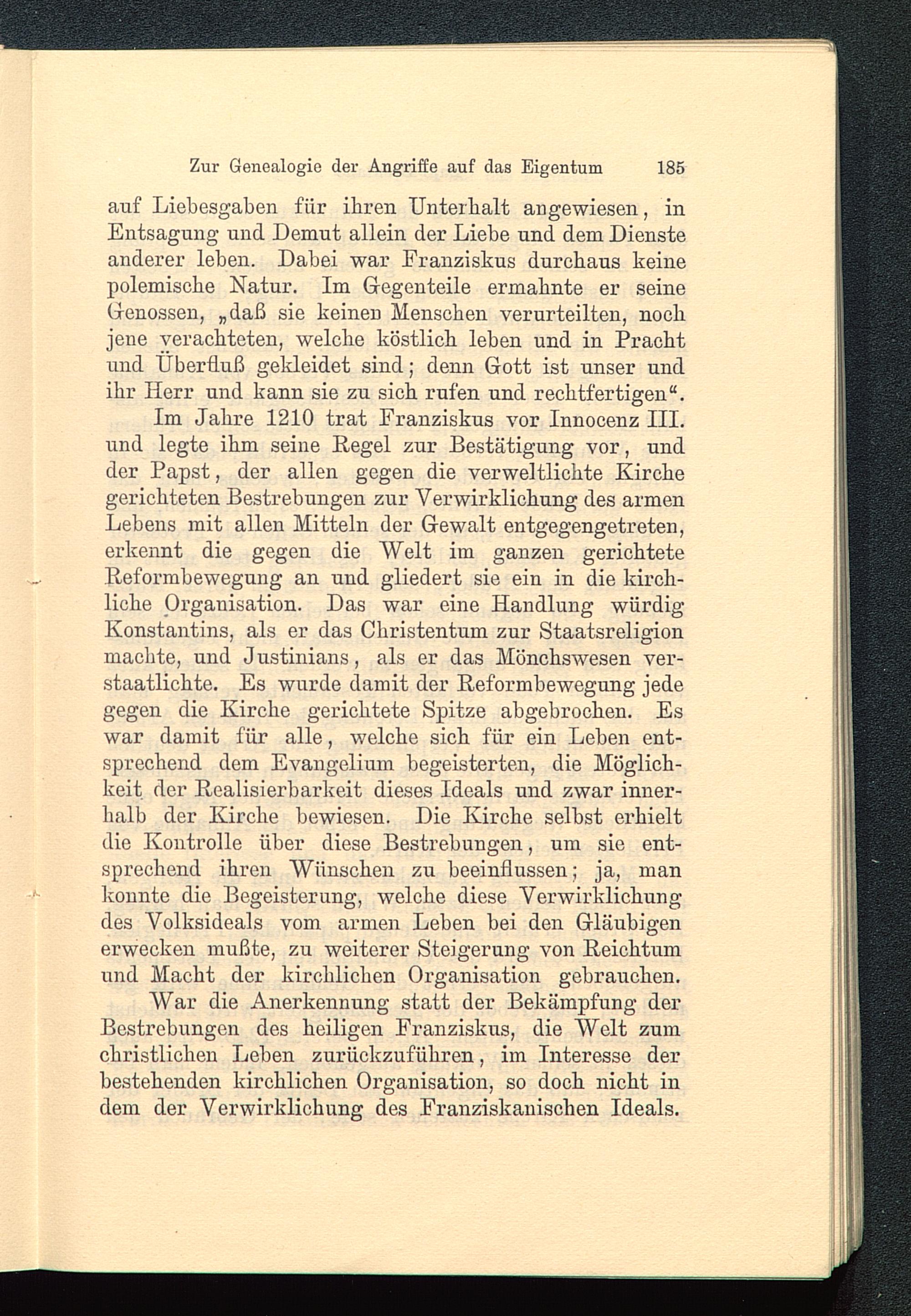 War die Anerkennung statt der Bekämpfung derBestrebungen des heiligen Franziskus, die Welt zumchristlichen Leben zurückzuführen, im Interesse derbestehenden kirchlichen Organisation, so doch nicht indem der Verwirklichung des Franziskanischen Ideals.