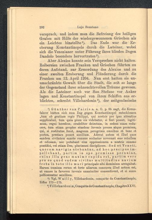 versprach, und indem man die Befreiung des heiligenGrabes mit Hilfe der wiedergewonnenen Griechen alsein Leichtes hinstellte 1 ). Das Ende war die Er-oberung Konstantinopels durch die Lateiner, wobeisich die Venezianer unter Führung ihres blinden DogenDandolo besonders hervortraten 2 ).