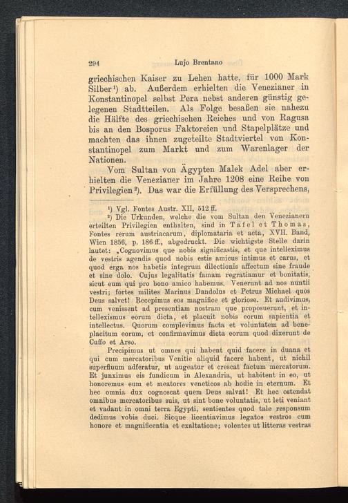 Vom Sultan von Ägypten Malek Adel aber er-hielten die Venezianer im Jahre 1208 eine Reihe vonPrivilegien 2 ). Das war die Erfüllung des Versprechens,