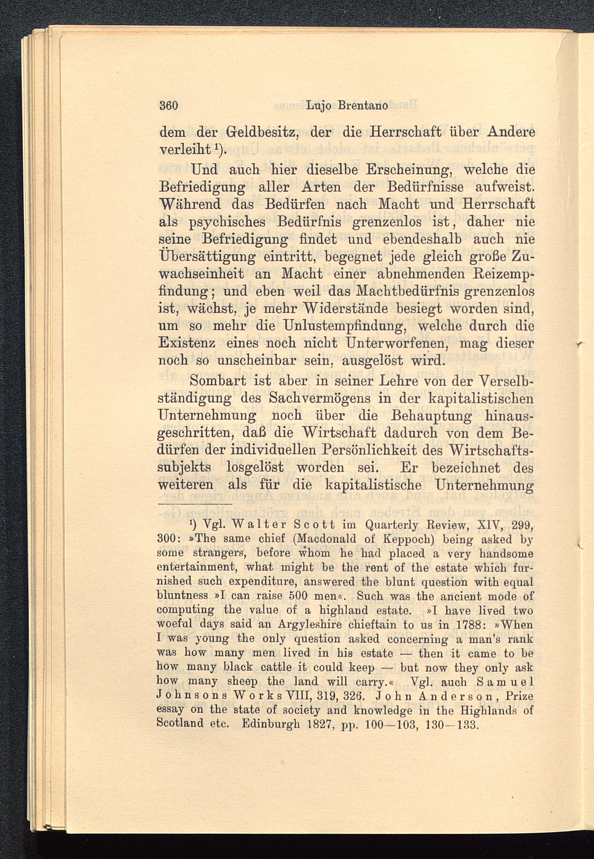 I was young the only question asked concerning a man’s rankwas how many men lived in his estate — then it came to behow many black cattle it could keep — but now they only askhow many sheep the land will carry.« Vgl. auch SamuelJohnsons Works VIII, 319, 326. John Anderson, Prizeessay on the state of society and knowledge in the Highlands ofScotland etc. Edinburgh 1827, pp. 100—103, 130- 133.