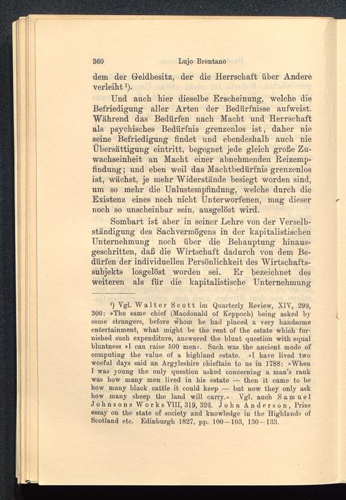 ') Vgl. Walter Scott im Quarterly Review, XIV, 299,300: »The same chief (Macdonald of Keppoch) being asked bysome strangers, before wliom he had placed a very liandsomeentertainment, what inight be the rent of the estate which fur-nished such expenditure, answered the blunt question with equalbluntness »I can raise 500 men«. Such was the ancient mode ofcomputing the value of a highland estate. »I have lived twowoeful days said an Argyleshire chieftain to us in 1788: »When