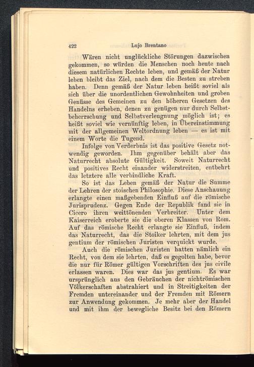 Wären nicht unglückliche Störungen dazwischengekommen, so würden die Menschen noch heute nachdiesem natürlichen Rechte leben, und gemäß der Naturleben bleibt das Ziel, nach dem die Besten zu strebenhaben. Denn gemäß der Natur leben heißt soviel alssich über die unordentlichen Gewohnheiten und grobenGenüsse des Gemeinen zu den höheren Gesetzen desHandelns erheben, denen zu genügen nur durch Selbst-beherrschung und Selbstverleugnung möglich ist; esheißt soviel wie vernünftig leben, in Übereinstimmungmit der allgemeinen Weltordnung leben — es ist miteinem Worte die Tugend.