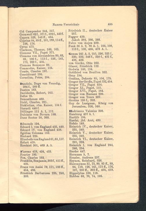 Cid Campeador 244, 357.Cromwell 621, 371 f., 402f., 440f.Cypern 326, 346 ff., 434.Cyprian 84, 89 ff., 101,109,114ff.,126, 176.