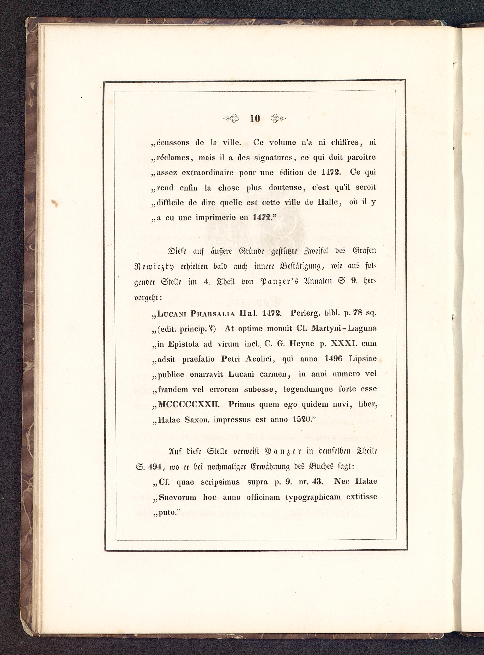 „Lucam Pharsalia Hai. 1472. Perierg. bibl. p. 78 sq.„(edit. princip. ?) At optirne rnonuit Cl. Martyui-Laguna„in Epistola ad virurn incl. C. G. Heyne p. XXXI. cuin„adsit praesatio Petri Aeolici, qui anno 1496 Lipsiae„publice enarrayit Lucani carnien, in anni nurnero vel„fraudern vel crrorein subesse, legendumque feite esse„MCCCCCXXII. Primus quem ego quidem novi, liber,„Halae Saxon. impressus est anno 1520."