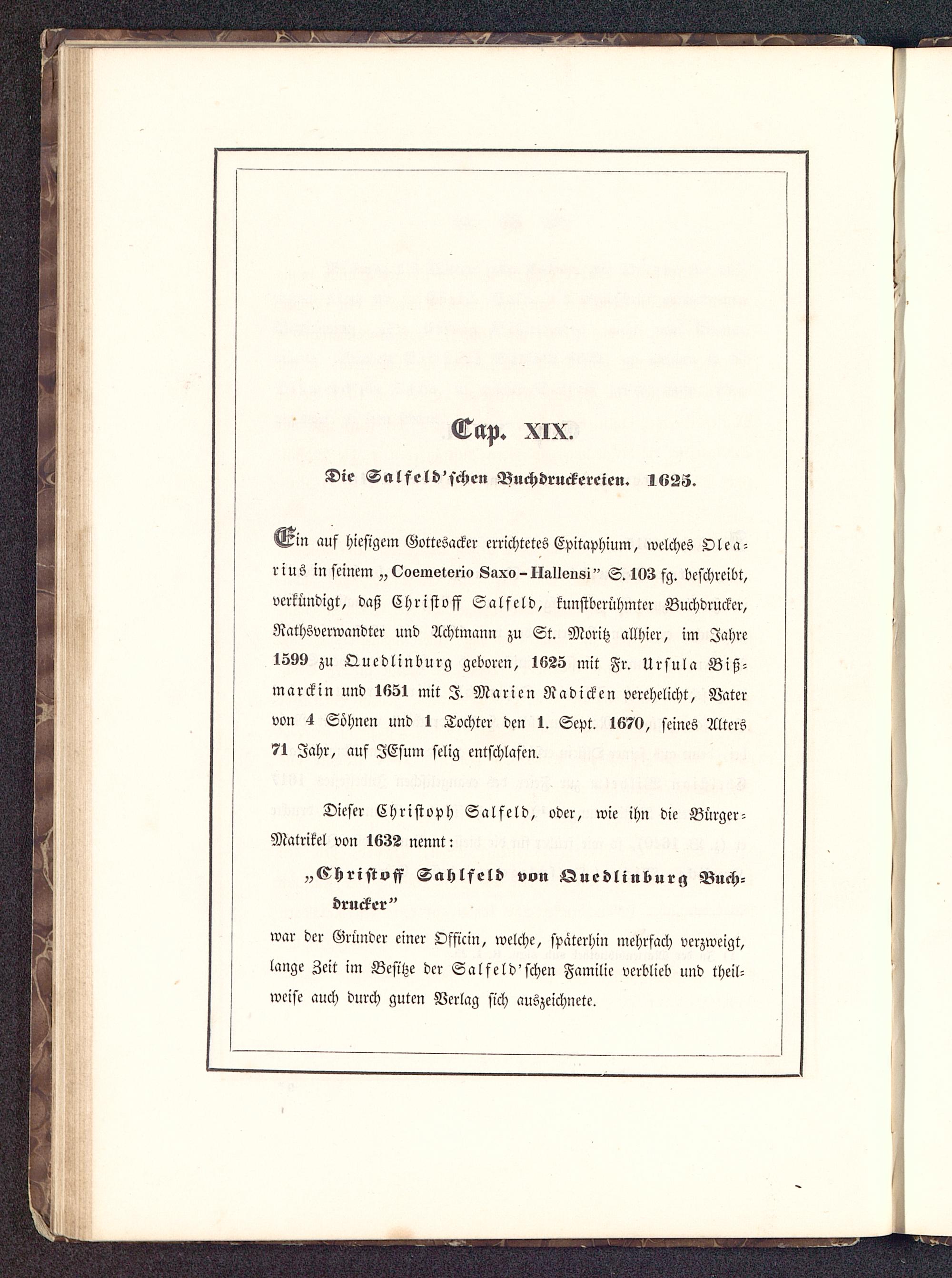 war der Gründer einer Ofsicin, welche, späterhin mehrfach verzweigt,lange Zeit im Besitze der Salfeld'schen Familie verblieb und teil-weise auch durch guten Verlag sich auszeichnete.
