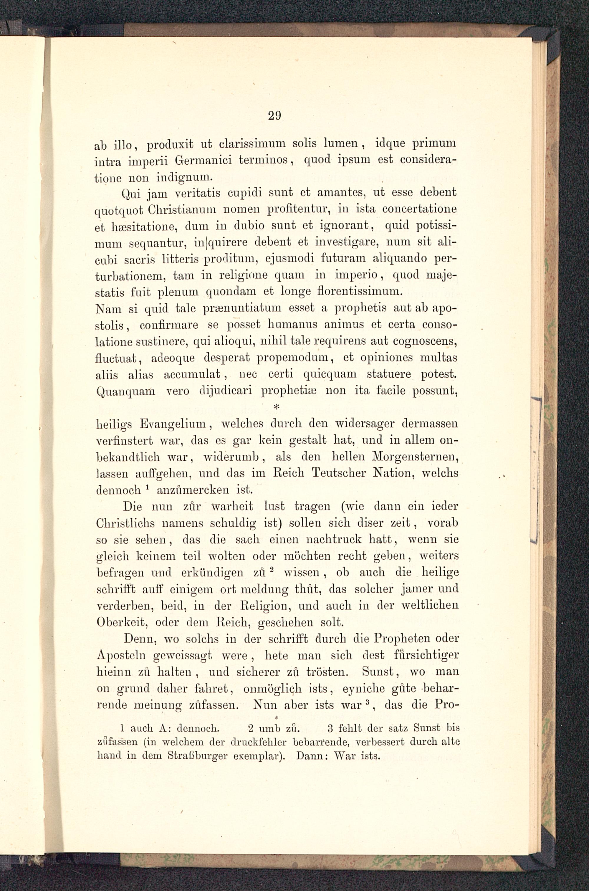 Qui jam veritatis cupidi sunt et amantes, ut esse debeutquotquot Christianum nomen profitentur, iu ista concertationeet hsesitatione, dum iu dubio sunt et ignorant, quid potissi-mum sequantur, in|quirere debent et investigare, nuin sit ali-cubi sacris litteris proditum, ejusmodi futüram aliqnando per-turbationem, tarn in religione quam in imperio, quod niaje-statis fuit plenum quoudam et longe florentissimum.Nam si quid tale praenuntiatum esset a prophetis aut ab apo-stolis, confirmare se posset humanus animus et certa conso-latione sustinere, qui alioqui, nihil tale requirens aut cognoscens,fluctuat, adeoque desperat propemoduin, et opiniones multasaliis alias accumulat, nee certi quicquam statuere potest.Quanquam vero dijudicari prophetise non ita facile possunt,